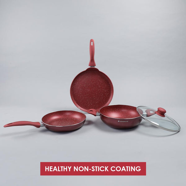 - Easy Maintenance: Wonderchef Garnet Non-Stick Cookware Set is stain and corrosion-resistant, it is easy to clean and maintain.