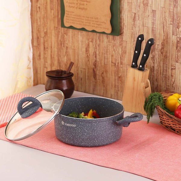 Enhance your cooking and dining experience with the most popular Wonderchef Granite Casserole. The granite finish gives the aluminium cookware a stylish and modern look. Wonderchef Granite Casserole is ideal for cooking and serving and looks equally awesome on your cooktop or on your dining table. The granite finish gives the non-stick Casserole a stylish and modern look. Evoke the inner chef in you and cook healthy, low fat and delicious meals at home.