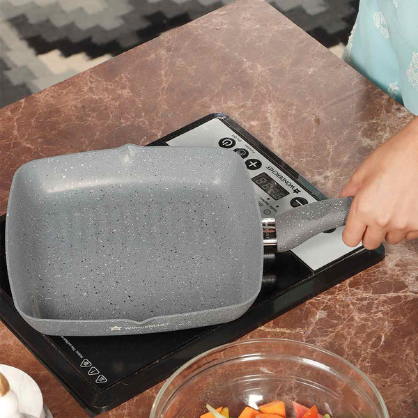 Granite Non-stick Grill Pan, Soft-touch Handle, Virgin Grade Aluminium, PFOA/Heavy metals free, 3.5mm, 2 years warranty, Grey