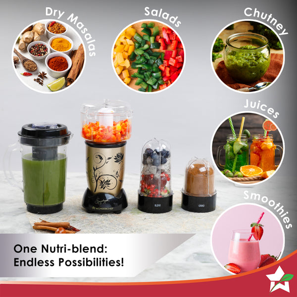 Nutri-blend Juicer, Mixer, Grinder, Smoothie Maker & Chopper | Complete Kitchen Machine | 22000 RPM Blender, Chopper, Juicer | 500W 100% Full Copper Motor | SS Blades | 4 Unbreakable Jars | 2 Years Warranty | Recipe Book By Chef Sanjeev Kapoor | Red