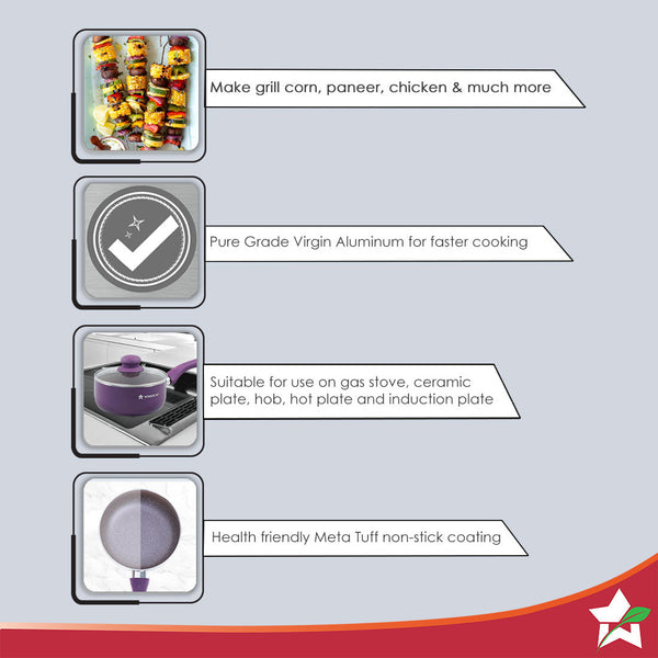 a) Heat Conductivity - Wonderchef Royal Velvet Set is made with pure grade virgin aluminium for quick and even heat distribution.