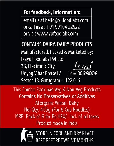 Yu Foodlabs-Cup Noodles Combo Pack Of 6-Chilli Manchurian, Zingy Cheese, Chilli Chicken, Butter Chicken, Red Hot Veg, Red Hot Chicken-No Preservatives-100% Natural-Ready To Eat Instant Noodles-455gram