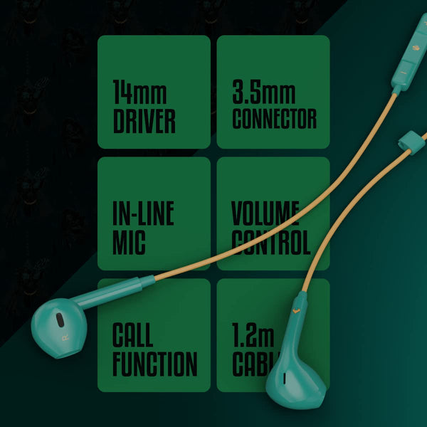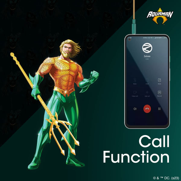 ZEBRONICS DC Aquaman Edition Buds 30 3.5mm Stereo Earphone with Inline Microphone for Calling, Volume Control, Multifunction Button, 14mm Drivers, Stylish eartip Design and 1.2 Meter Durable Cable