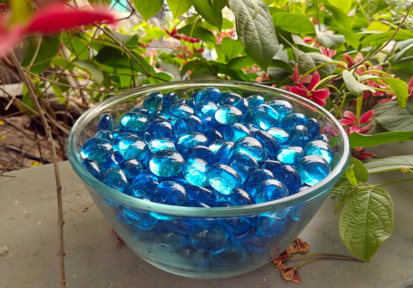 ZEINOO Blue Glass Gems Stones/Pebbles for Home & Garden Décor, Aquarium Décor, Vase Filler, Marble & Gravel Planted Substrate (Blue, 450 gm)
