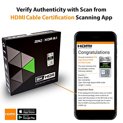 ZENIQ 8K Certified HDMI 2.1 5 Meters, 4K@120hz, 48Gbps - HDCP 2.2, 2.3, HDR 10 and Dolby Vision, eARC, Support 4K -120Hz Tested with 8K, 4K TV, PS5, RTX3080/3090, Xbox Series X, Black