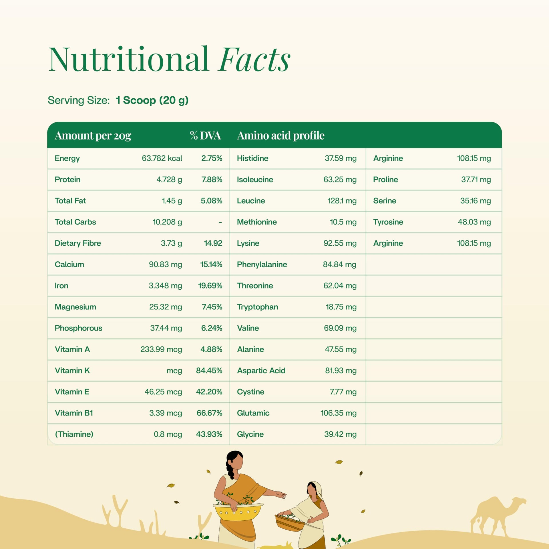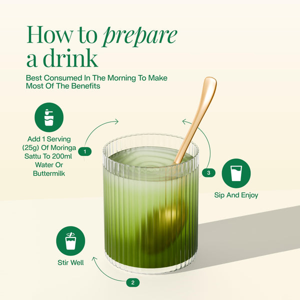 Maadico Moringa Sattu Protein Powder, 500 Gms | 4.7G Protein, 90.8G Carbs, 3.3G Fat Per 100G | Boosts Stamina, Endurance, Energy | Plant Protein Powder For Lean Muscle Mass & Weight Management |