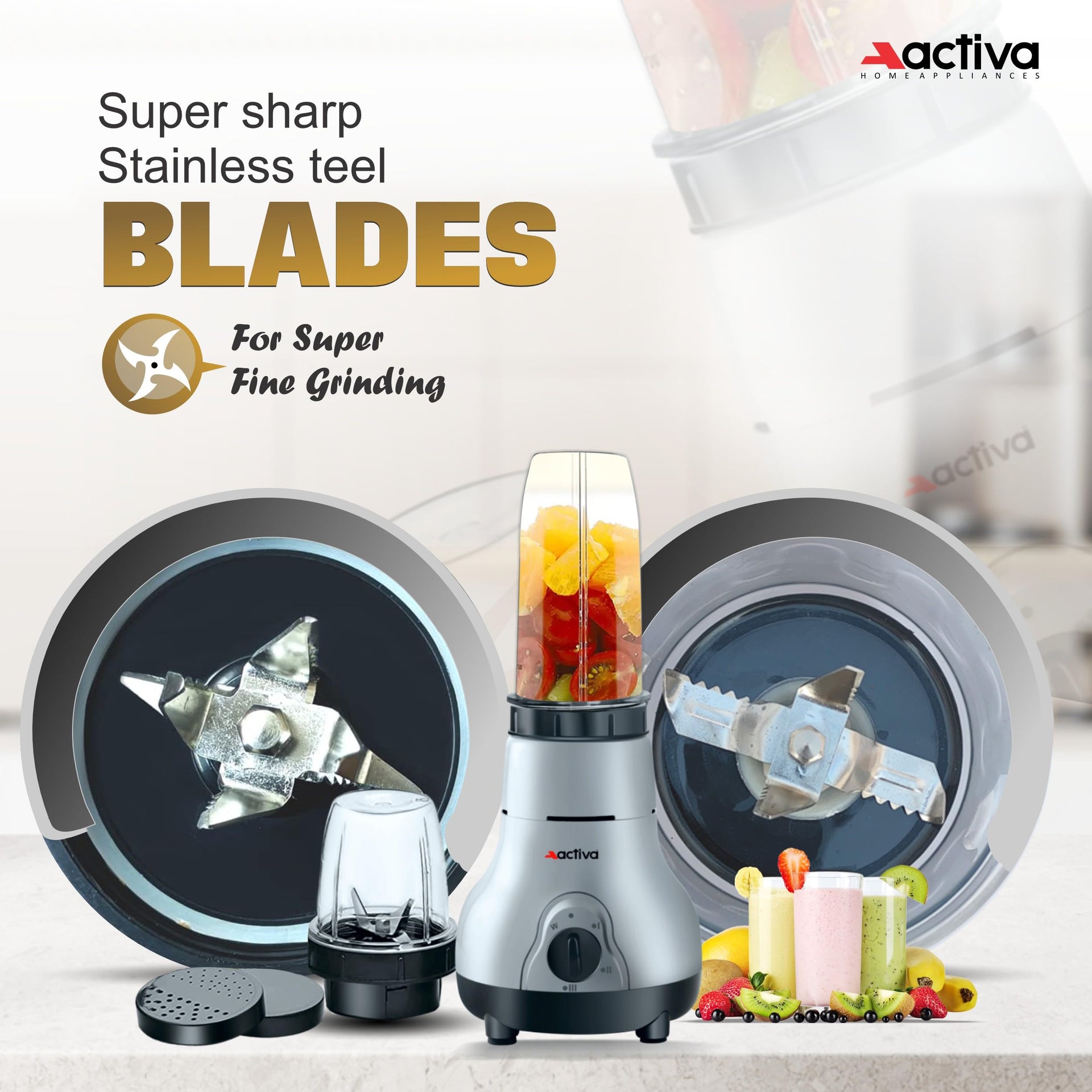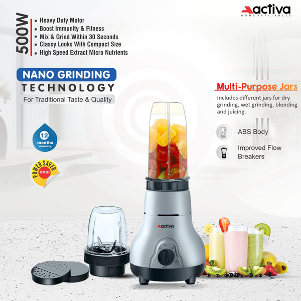 ACTIVA Easy Mix Nutri 2 Jar Mixer Grinder Powerful 500 Watt Motor | Long Lasting Shock Proof Abs Body | Heavy Duty Motor With Nano - Grinding Technology, Black come with 2 year warranty