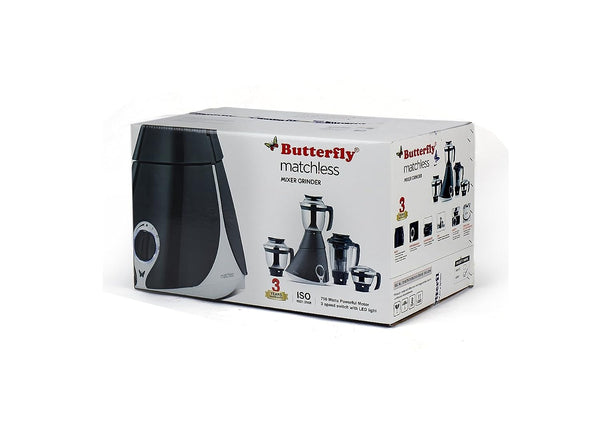 Butterfly Matchless 750-Watt Mixer Grinder with 4 Jars (Grey and White) - (Indian Plug)