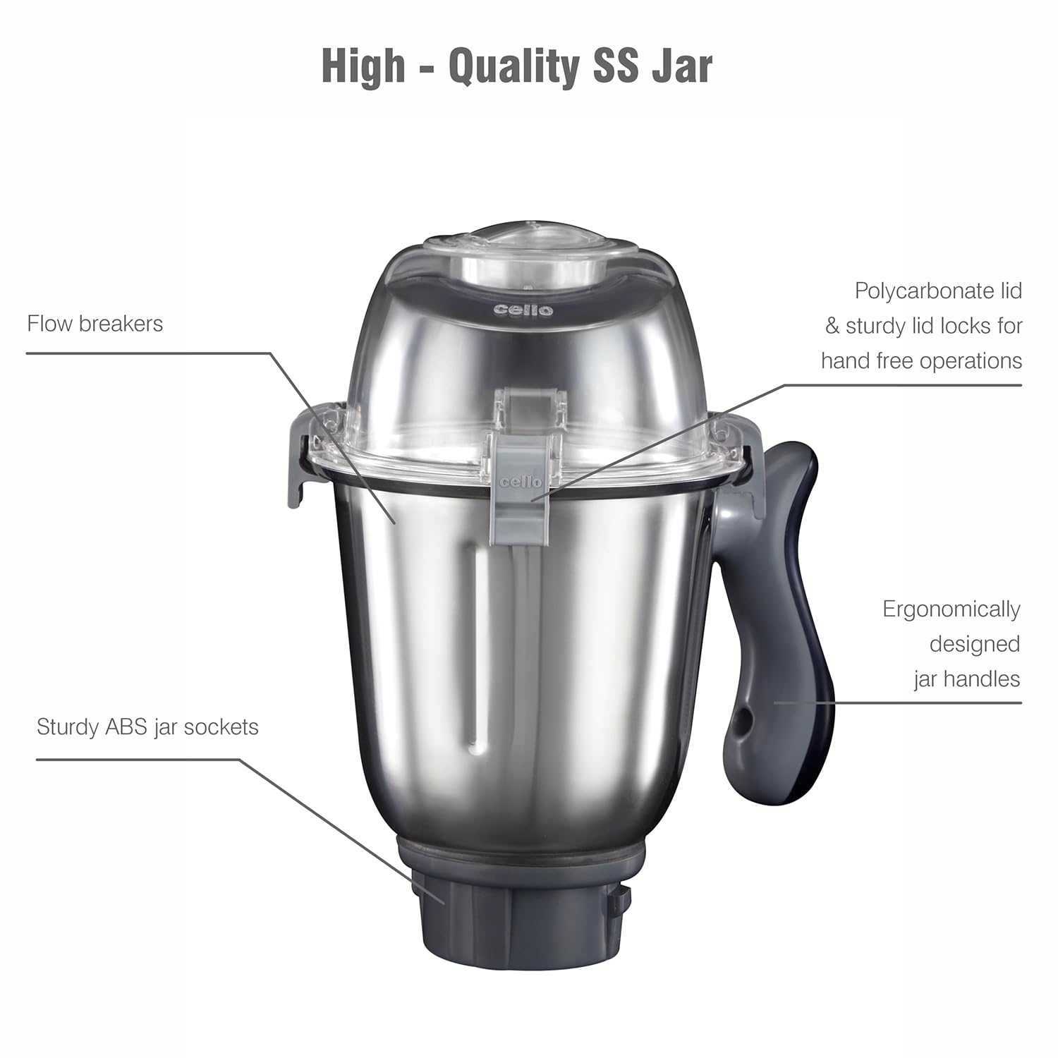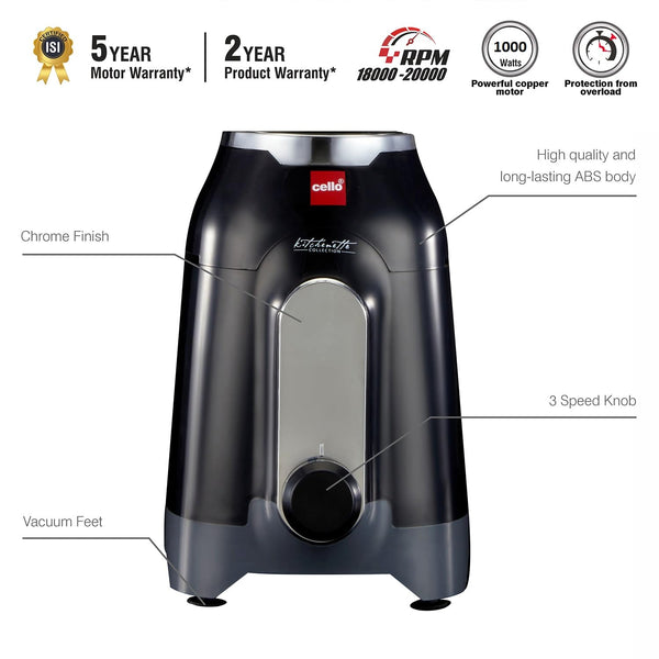Cello Discovery Chef Mixer Grinder 5 Jars, 1000Watts | Chutney Jar, Wet Jar, Food Machine, Juicer Jar, Dry Jar | Stainless Steel Jars and Sturdy Body | 6 Additional Attachments