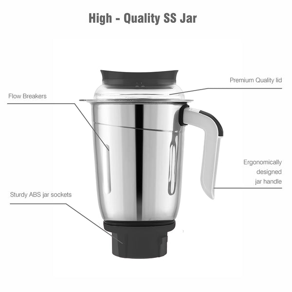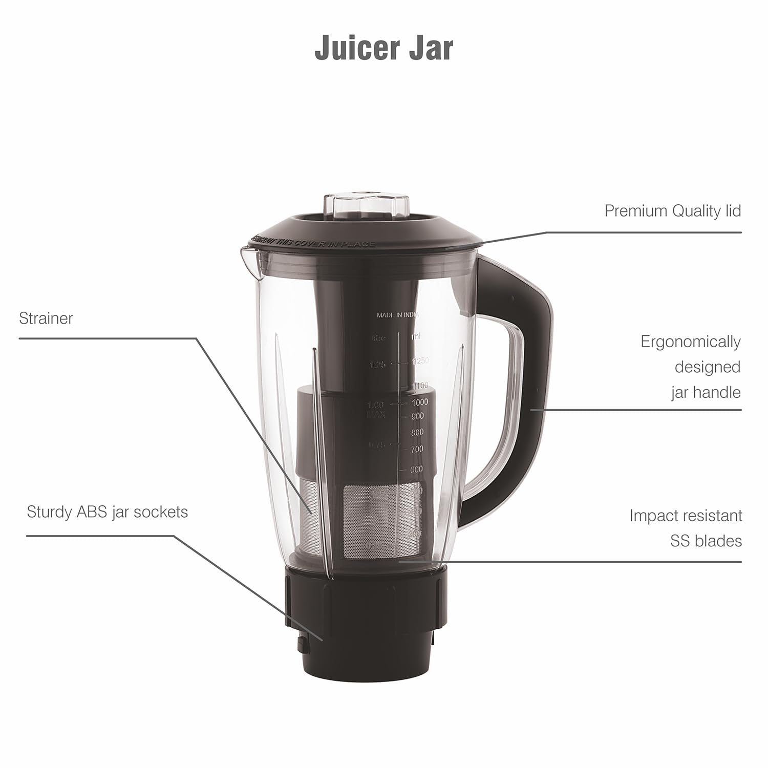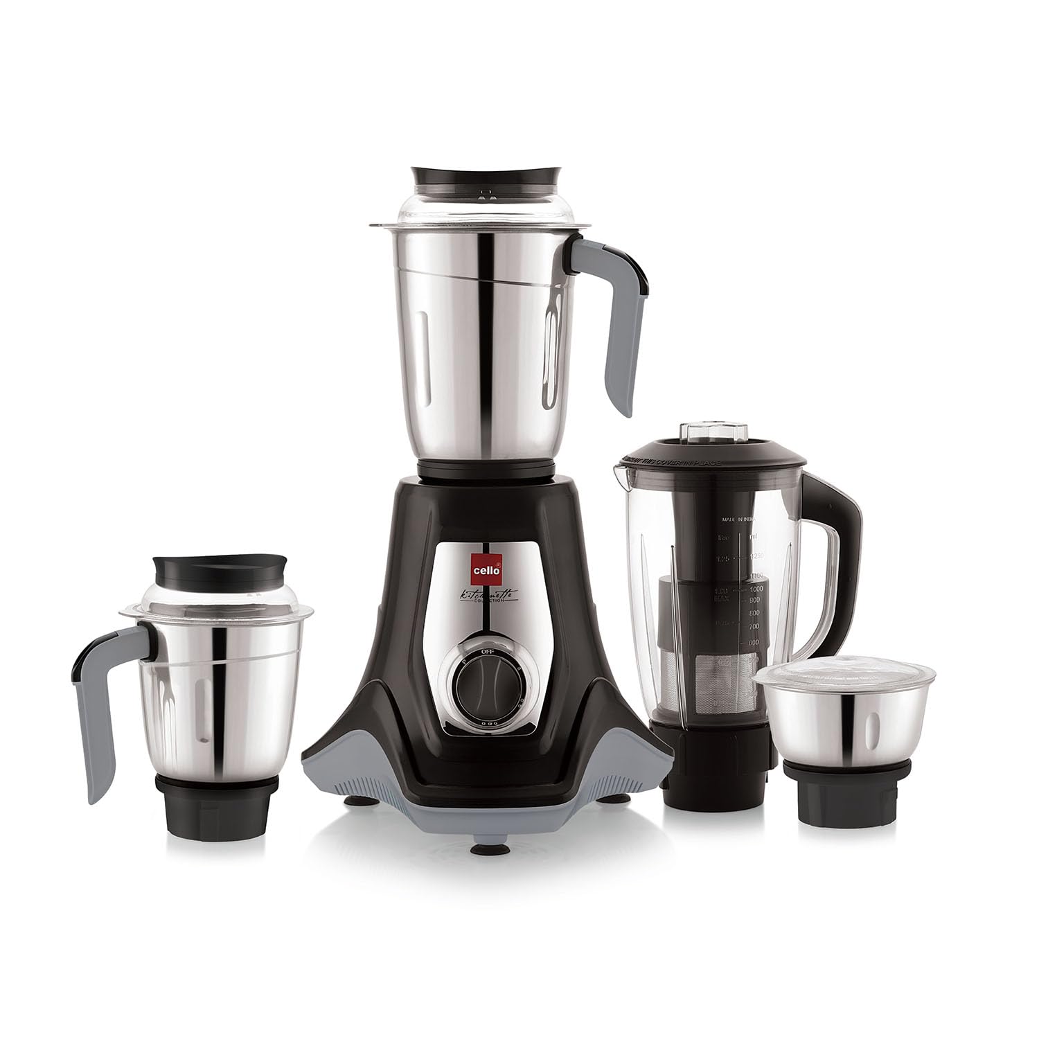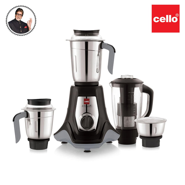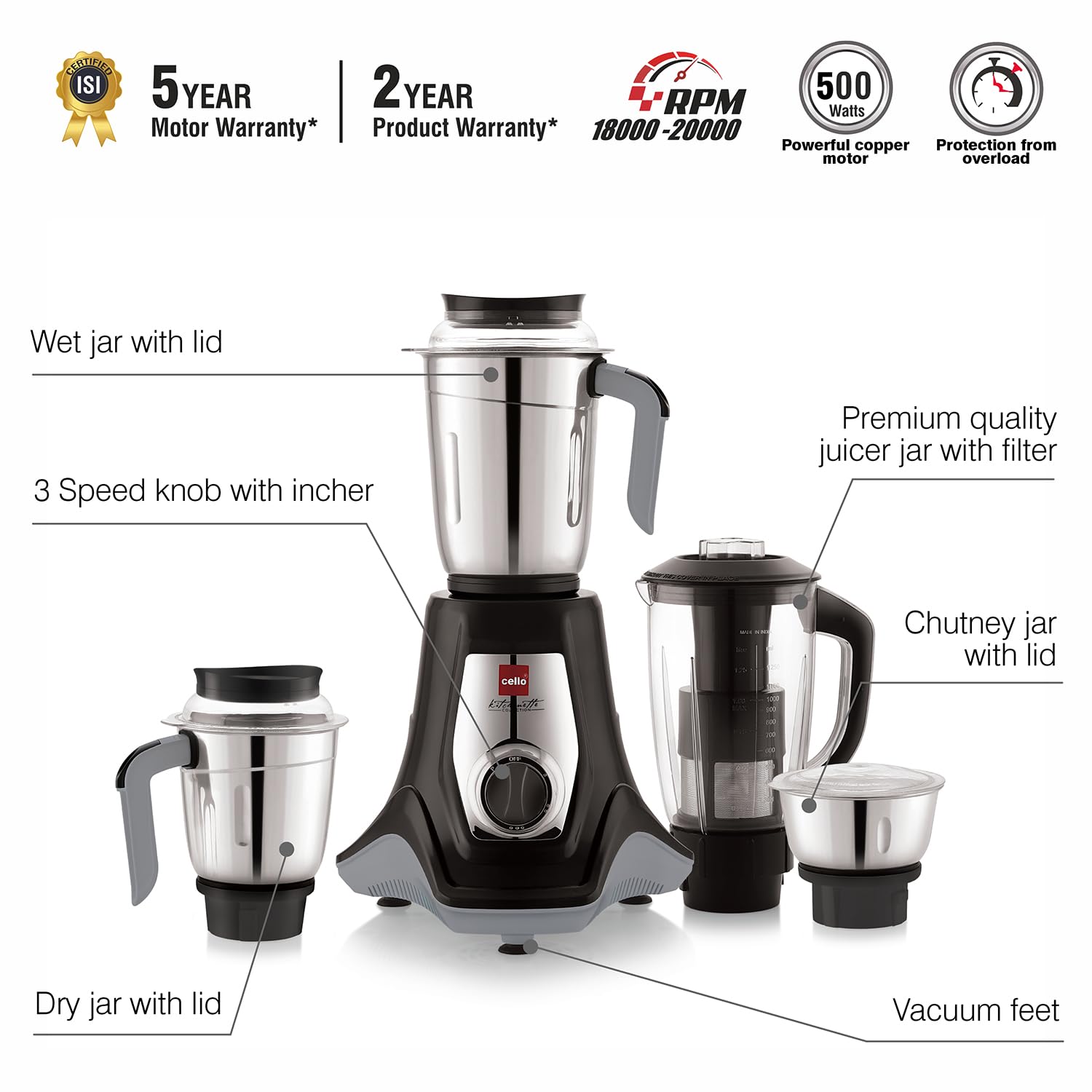 Cello Kitchenette Collection Levanate Pro Plus Mixer Grinder with 3 Jars & 1 Juicer | 500 Watts | 3X Speed Control | Set of 4 | Black