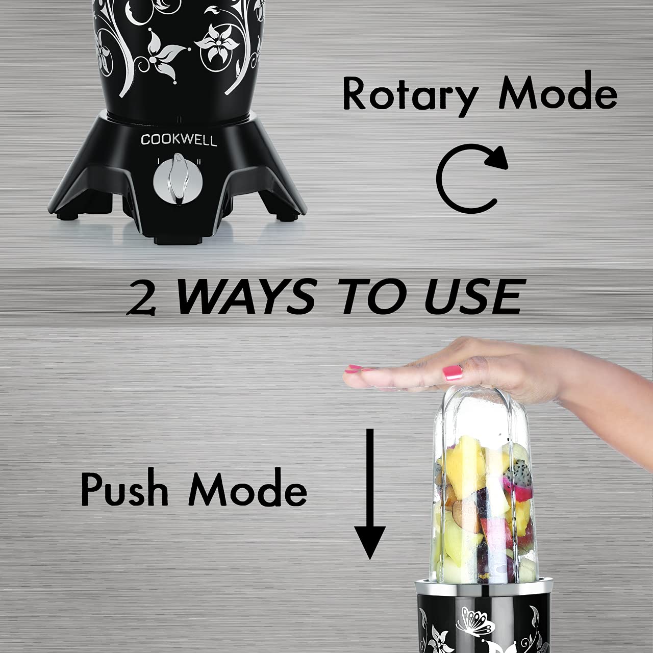 Cookwell Bullet Mixer Grinder (5 Jars, 3 Blades, Black) - Copper, 600 Watts - 2 Year Warranty