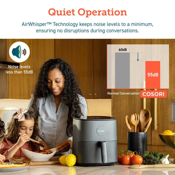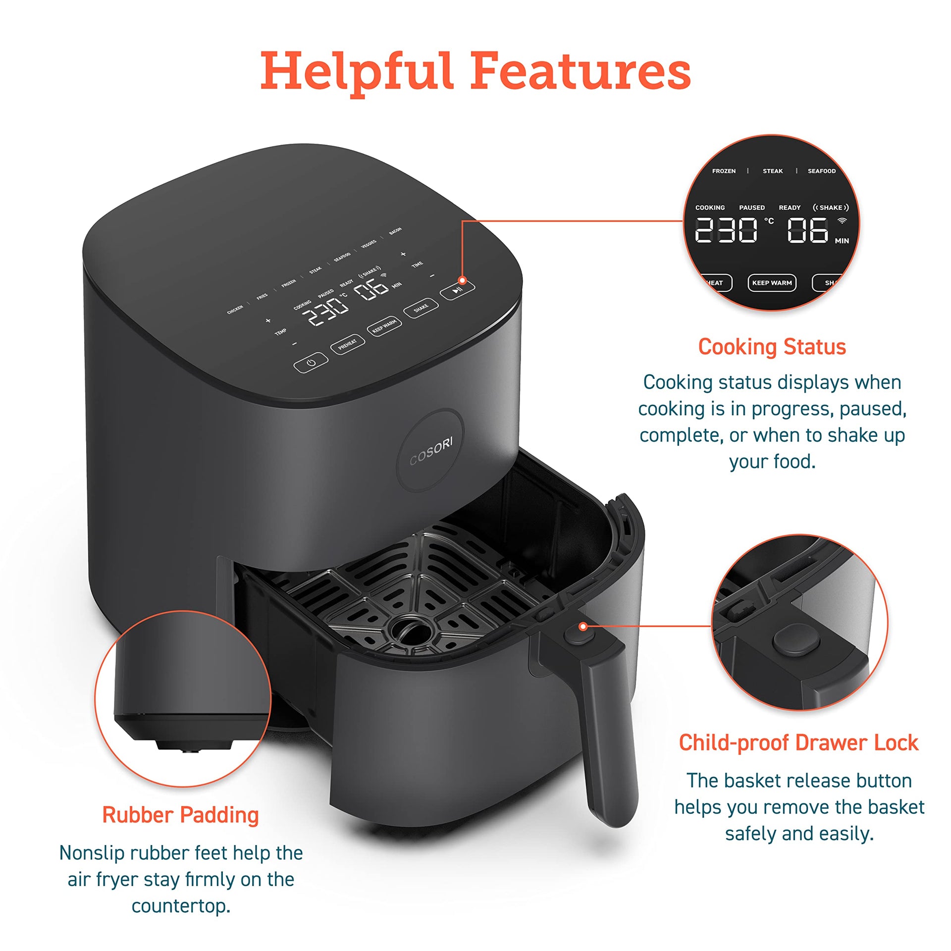 COSORI Air Fryer for home 4.7L, 9-in-1 Kitchen Oven Appliances, 30 Recipes Cookbook, Digital Tempered Glass Display, Max 230℃ Setting, Quiet, 4 Portions, 1500W, L501 Grey