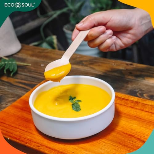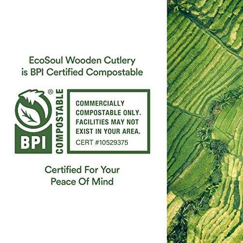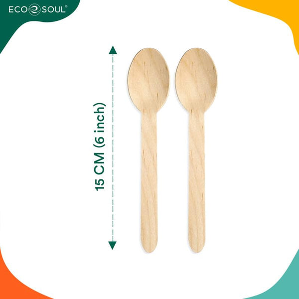 ECO SOUL [160mm, 50 Pack] Disposable Spoons | Wooden Dining Flatware | Ideal for Kids Birthday, Wedding & Party