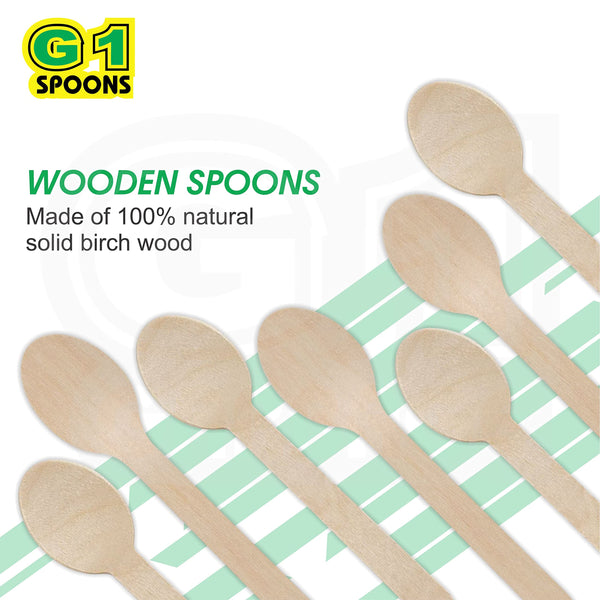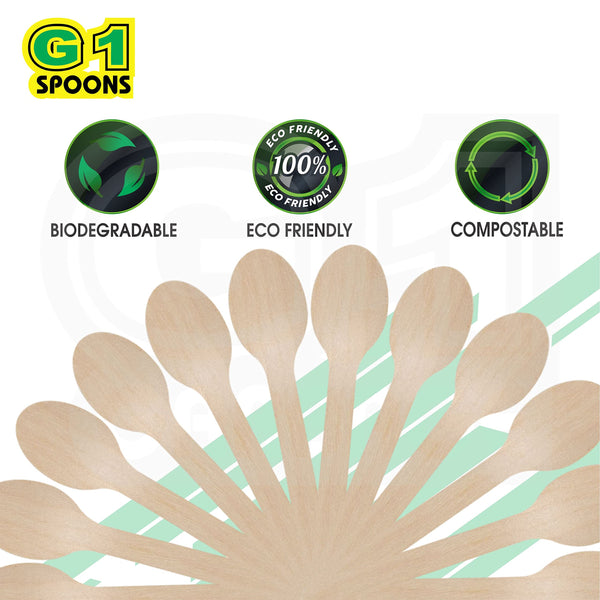 G 1 Bio-degradable Disposable Wooden Spoons | Eco Friendly Disposable Spoons | for Home Use, Party, Events |160 MM | 100 Pieces |
