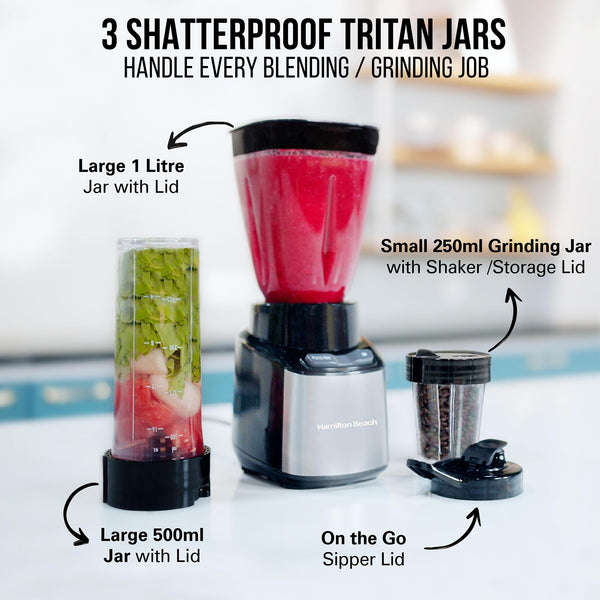 Hamilton Beach Bullet Mixer Grinder,Mixer/Grinder/Blender-Peak Power 650Watts,Blender For Smoothies And Juices/Smoothie Blender,Nutri Blender,Blender For Kitchen,Baby Food Blender,8Pc Set,Black