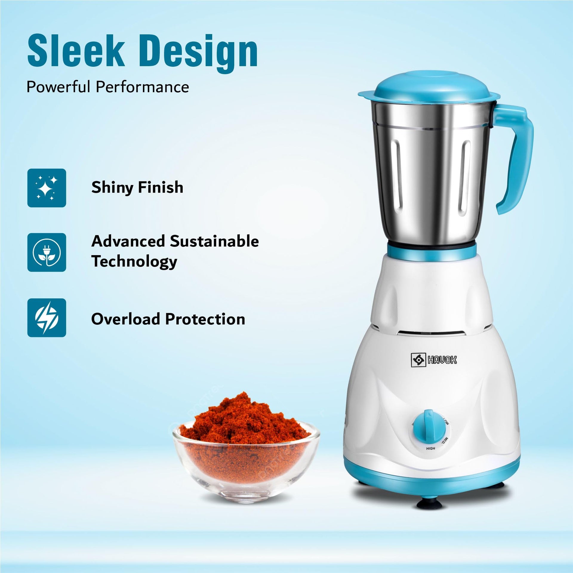 Havok 750 Watt Juicer Mixer Grinder with 2 Jars for Grinding, Mixing, Juicing with Powerful Motor | 2.6 Year Warranty | (White & Blue, 2 Jars)