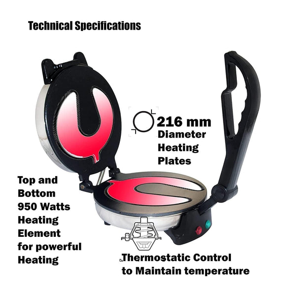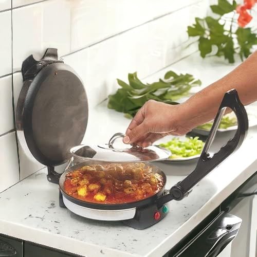 Hilton Electric 2 In 1 Upgraded Roti Maker Cooking Pan (Multi-Utility) With Stainless Steel Lid High Grade Low Power Consumption Portable Quick And Fast (New Version 2024), 950 Watts
