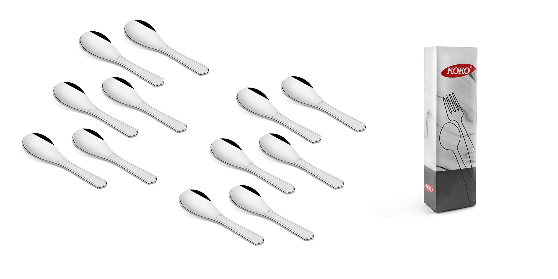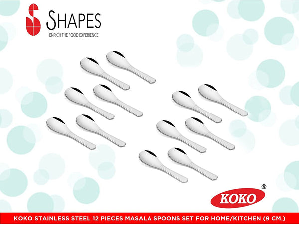 Koko Masala Spoon Set - 12 Pieces | Stainless Steel | Perfect for Spices and Condiments | Elegant Design | Dishwasher Safe | Rust-Resistant | Ideal for Home and Professional Use | Length 9 cm