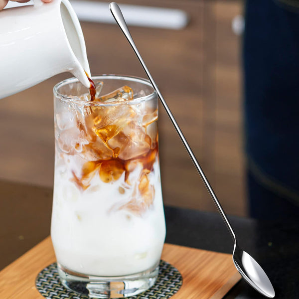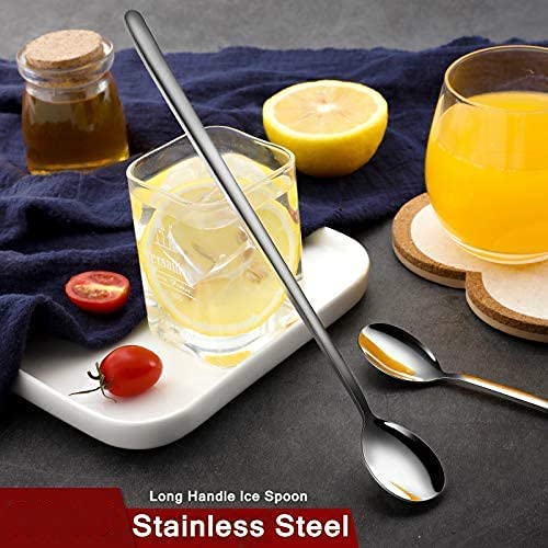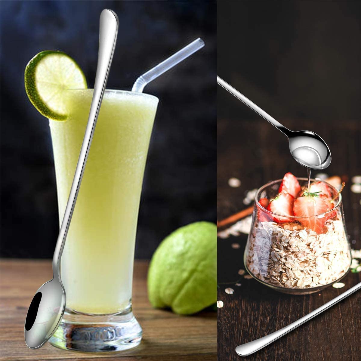 Long Handle Spoon For 8 Pics Long Mixing Stirring Spoon For Iced Tea,Coffee Suitable For Tall Glasses,Cocktail Bar Stainless Steel Long Handle Spoon,Soda Spoon,Bournvita/Horlicks,Milkshake Spoon