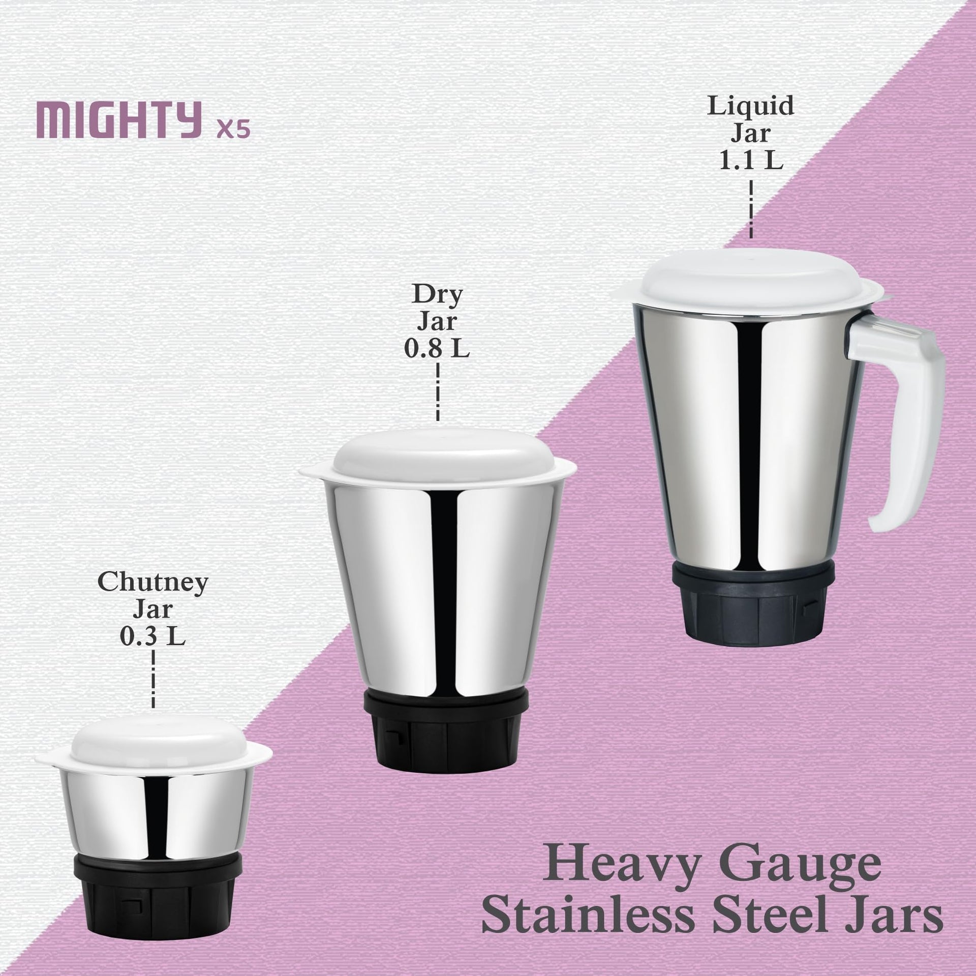 McCoy Mighty X5 Mixer Grinder | 3 SS Jars | 500 W Mixi | Hybrid Motor with 2 Years Warranty | Light Purple & White