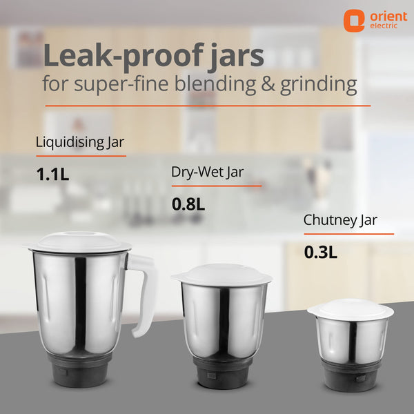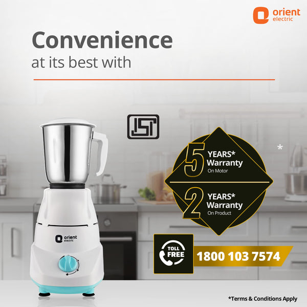 Orient Electric 500W mixer grinder | Kitchen Kraft 500 MGKK50B3 with 3 SS jars | Longer life balanced coil motor | ABS body | Uniform grinding | 5 years motor warranty