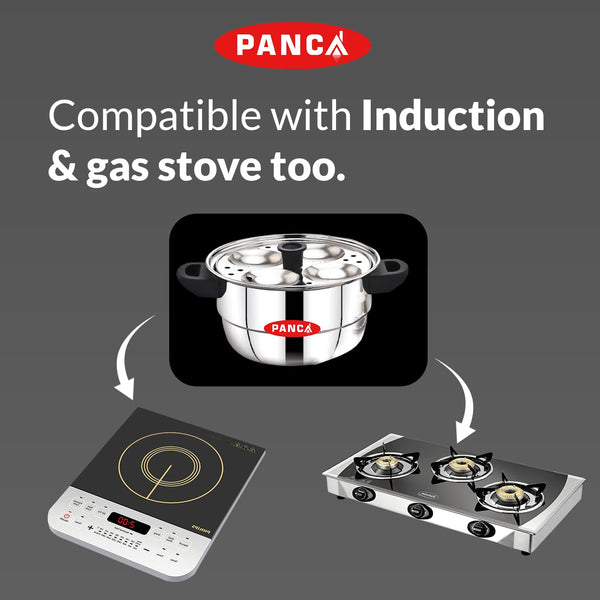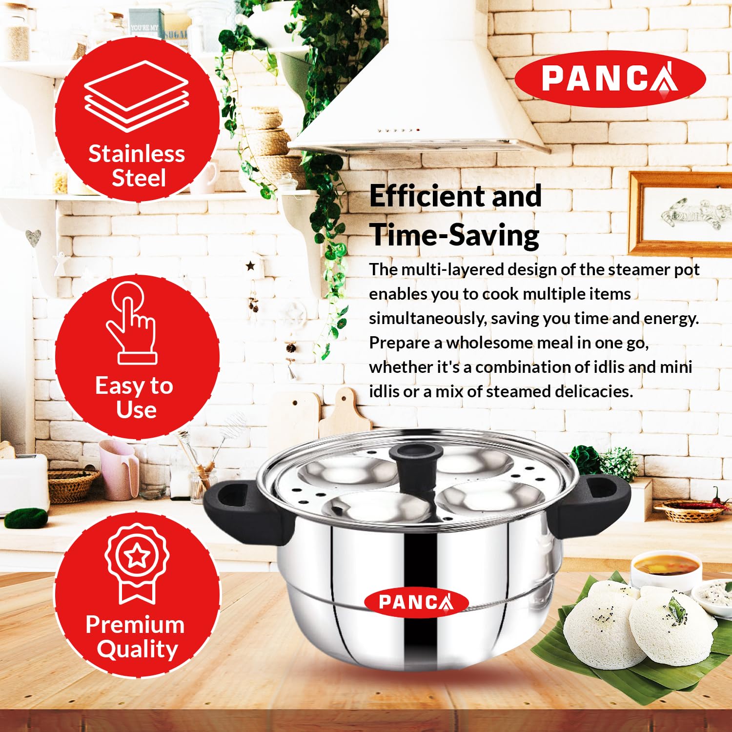 PANCA Idli Maker Stainless Steel Idli Cooker, Idli Steamer, Idly Pot, Dhokla Maker and Mini Idli Plate (Silver, 12 Idli 5 Plate Idli Kadai)