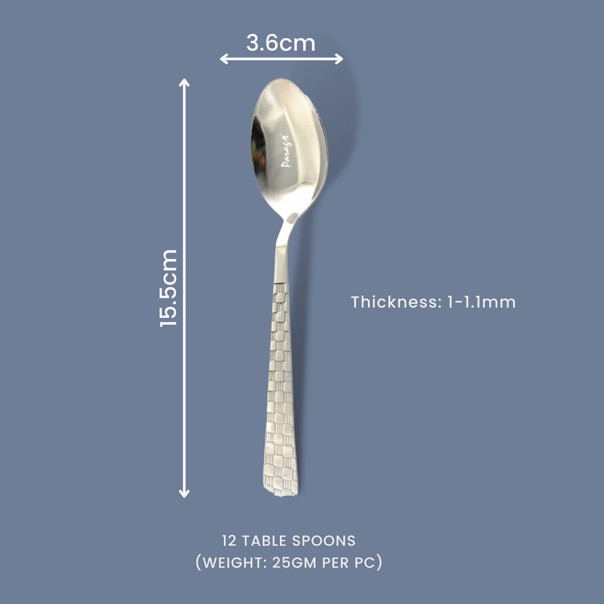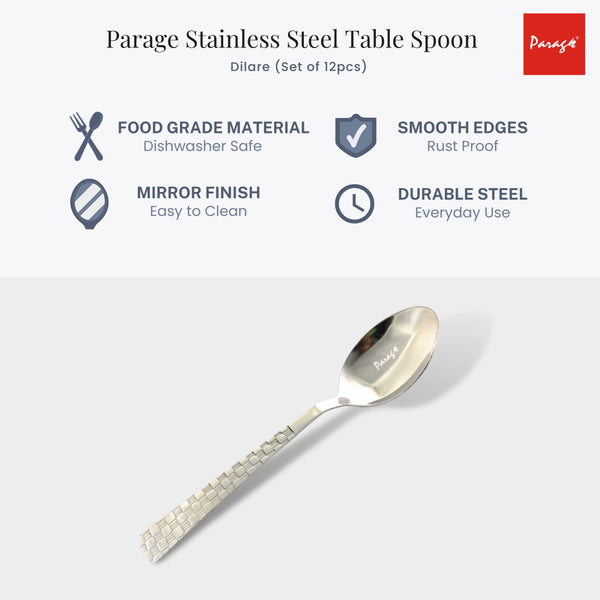 Parage Stainless Steel Spoon Set of 12, Table Spoon, Length 15.5 cm, Elegant Dinner Spoon, Silver (Dilare)