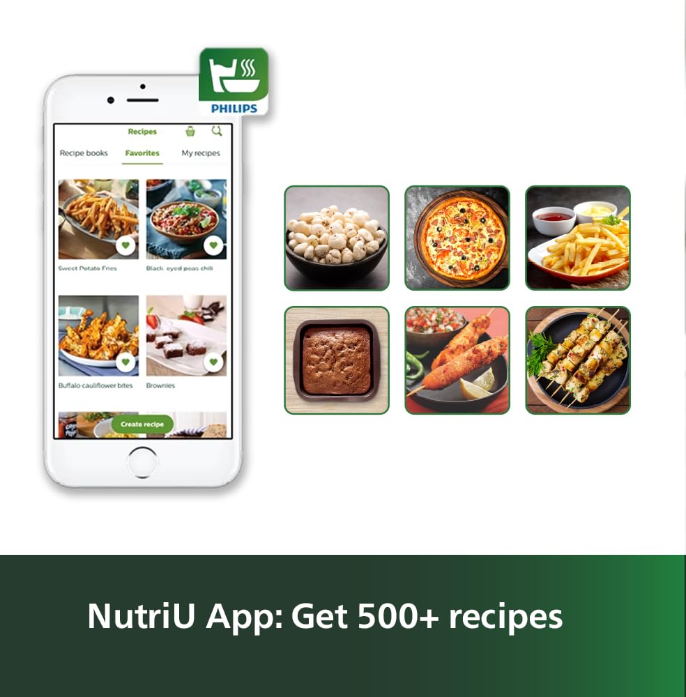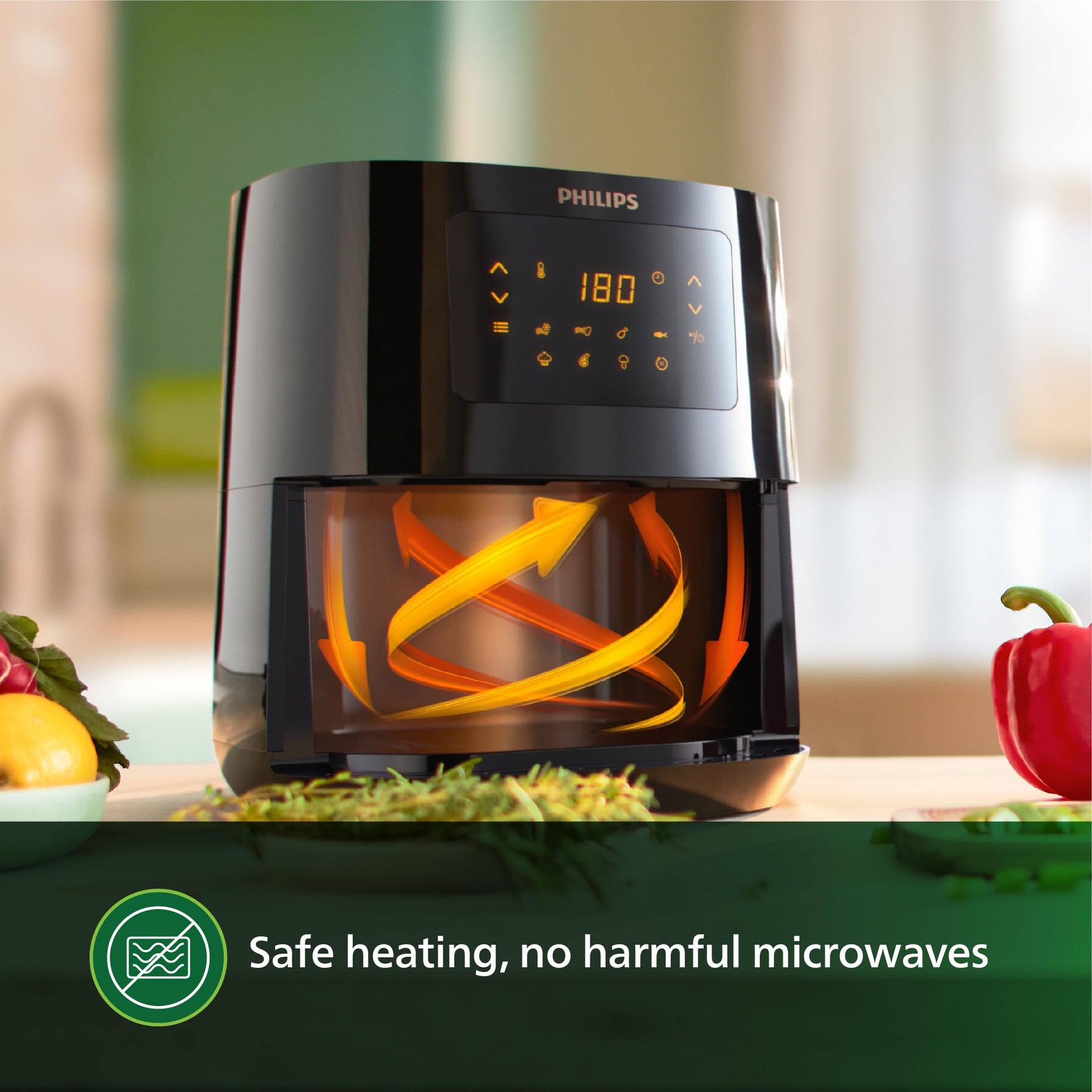 PHILIPS Digital Air Fryer HD9252/90 with Touch Panel, uses up to 90% less fat, 7 Pre-set Menu, 1400W, 4.1 Liter, with Rapid Air Technology (Black), Large