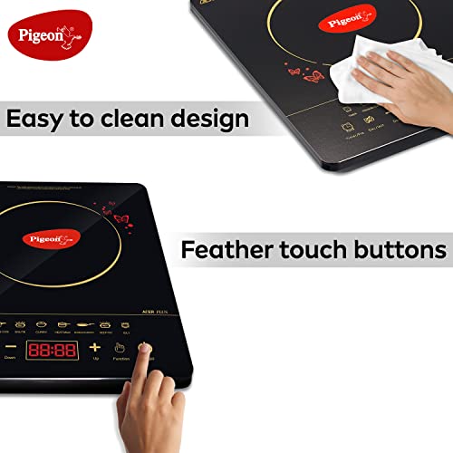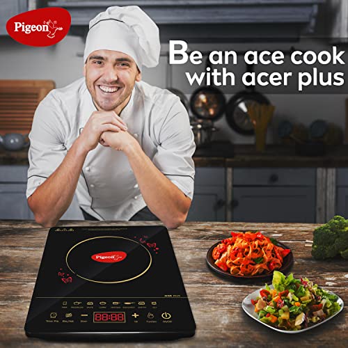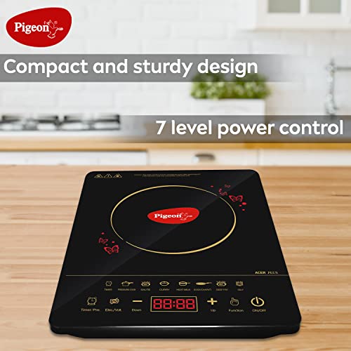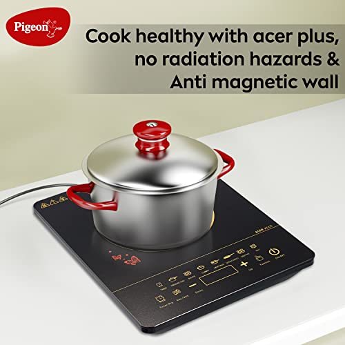 Pigeon By Stovekraft 14429 Acer Plus 1800 Watt Induction Cooktop with Feather Touch Control, Induction Stove comes with 8 Preset Menus and Auto-Shut Off features (Black)