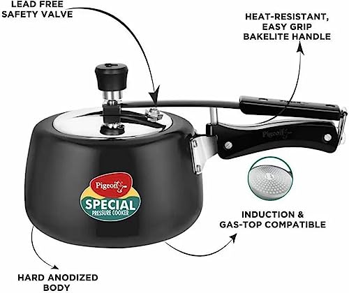 Pigeon by Stovekraft 3 Litre Special Plus Contura Hard Anodised Inner Lid Induction Base Pressure Cooker (Black) BIS Certified