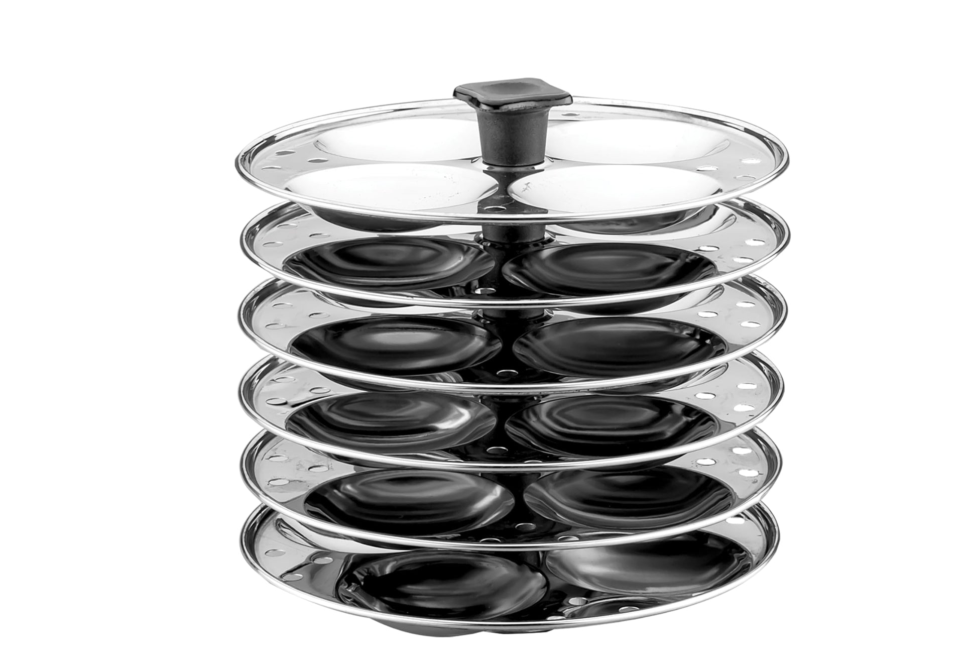 Pigeon Classic 6 Stainless Steel Idli Maker /Cooker with whistle indicator - 6 Plates (24 Idlis) / Idli Steamer/Idly Cooker Pot/ Stainless Steel Idli Maker with Silver Lid - Fluffy Idlies - Induction & Gas Base - 1 Year Warranty