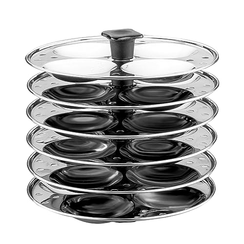 Pigeon Classic Stainless Steel Idli Cooker with Whistle Indicator | Idly Cooker Pot | Steel Idli Maker with Silver Lid - 6 Plates (for 24 Idlies)