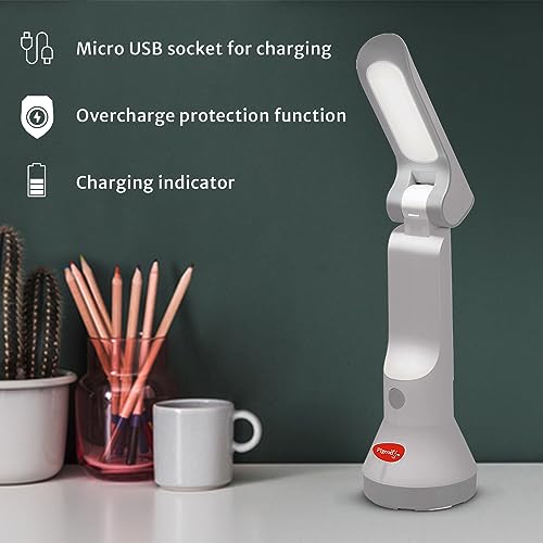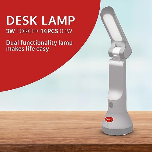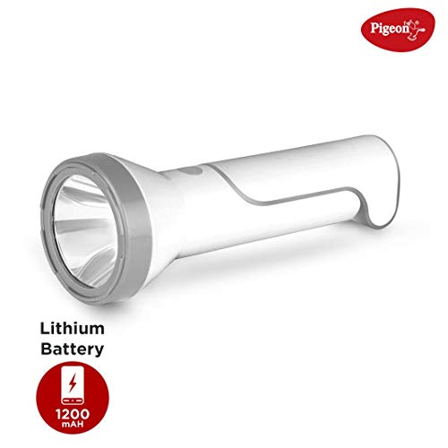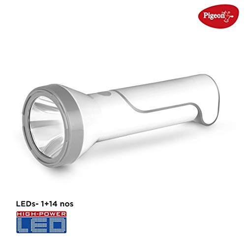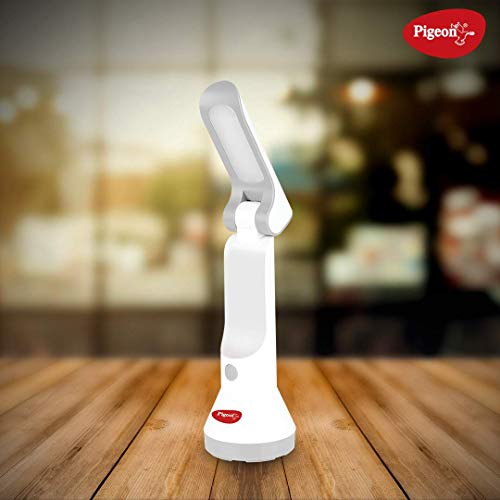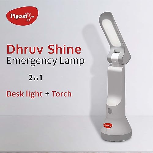 Pigeon Dhruv Shine 2 in 1 Desk and Torch Emergency Lamp with 1200 mAh and 8 Hours Backup (White, Pack of 1, Plastic)