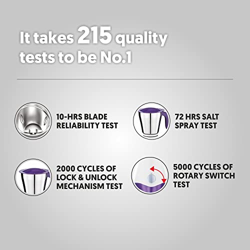 Preethi Crown Pro MG-254 Mixer grinder, 600 watt, White/Purple, 3 Jars with 5yr Motor Warranty & Lifelong Free Service (Indian Plug)