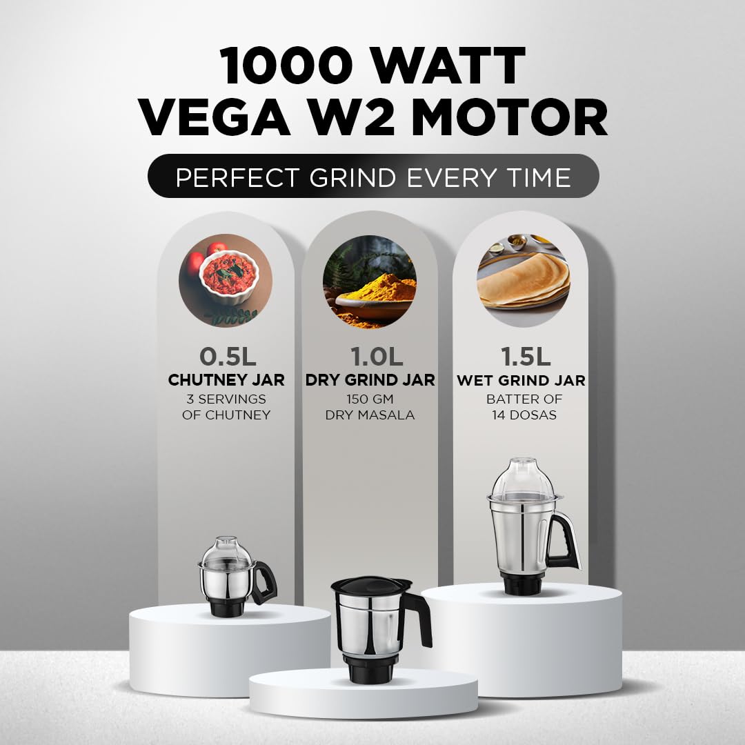 Preethi Taurus Pro Mixer Grinder for Kitchen, 3 Jars 1000 Watt Mixie, Dry and Wet Grinder Jar, 2 Year Warranty, Blue-Black, (Mg-259)