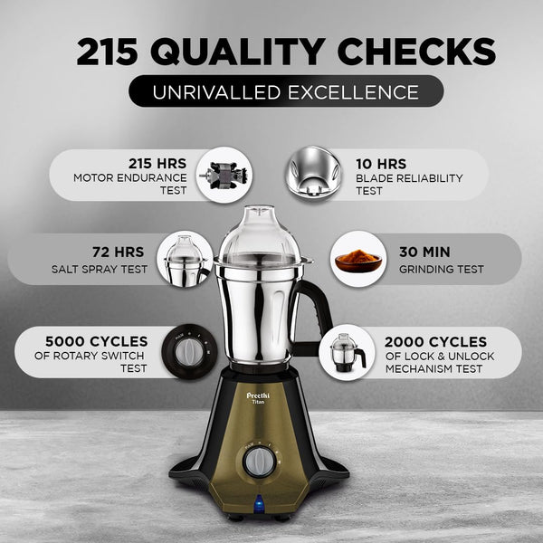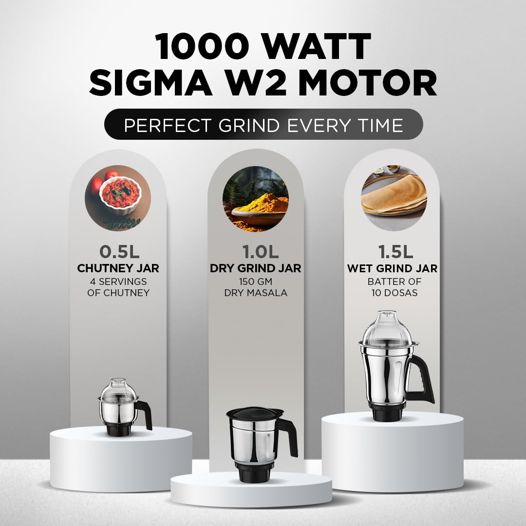 Preethi Titan Mixer Grinder for Kitchen | 3 Jars 1000W Mixie| Black (MG-283)