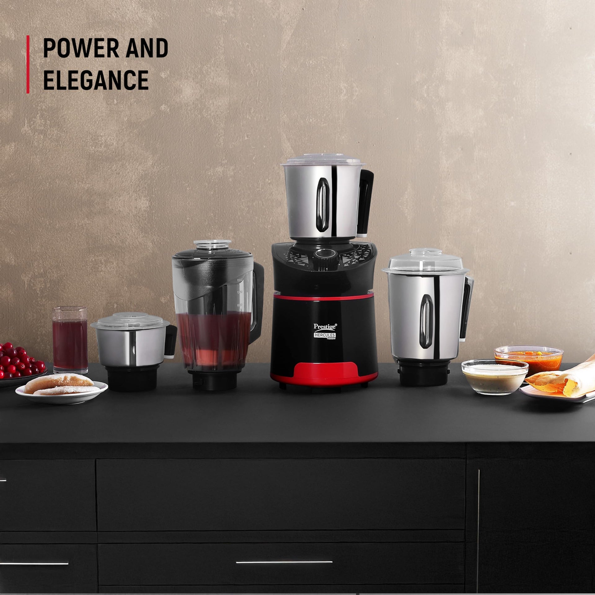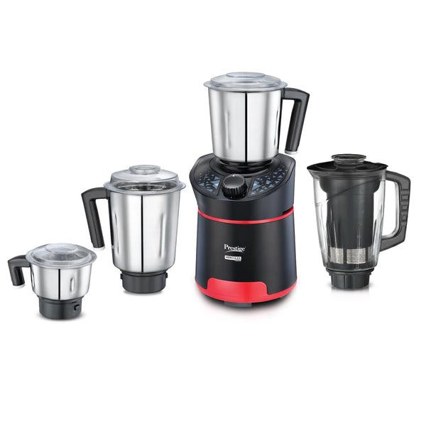 Prestige Hercules 1000W Mixer Grinder with 3 Stainless Steel jars & 1 Juicer jar|Flow-Breaker Design|Sturdy Handles|4 Super Efficient Blades|Black & Red