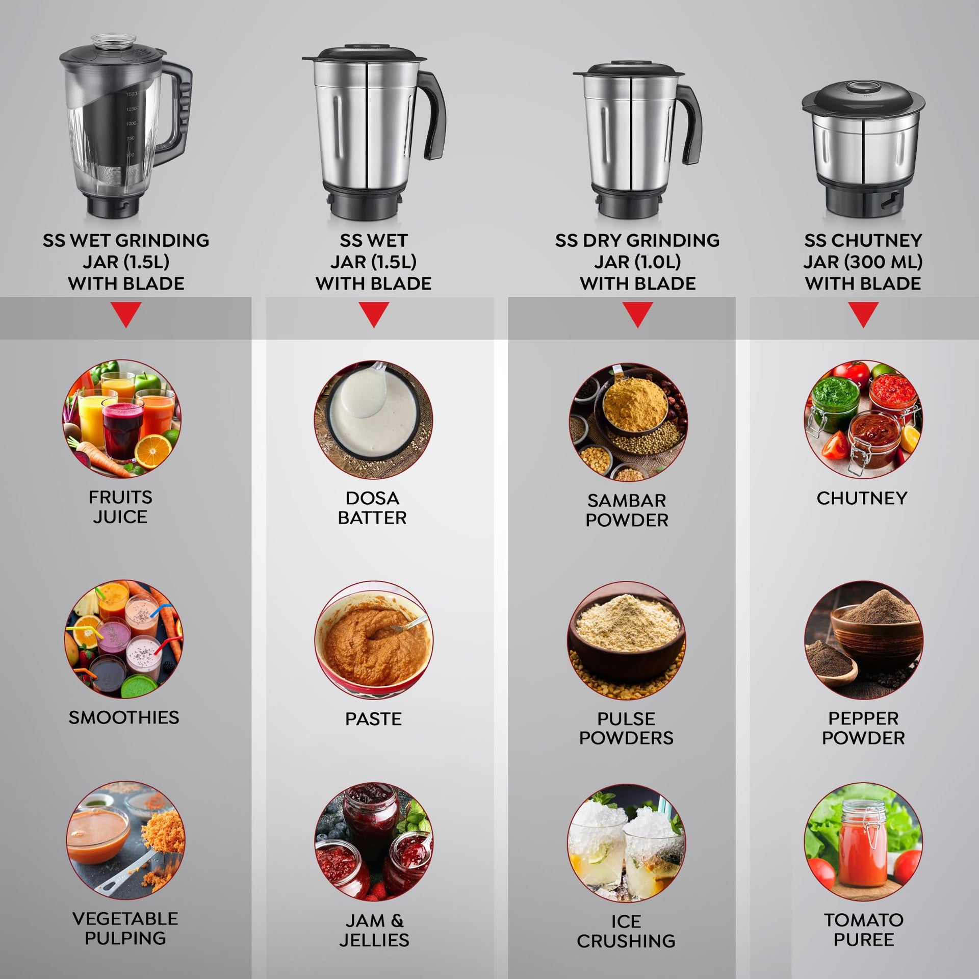 Prestige Iris Pro 750 Watts Mixer Grinder with 4 Jars (3 Stainless Steel Jars + 1 Juicer Jar)|4 Super-Efficient Stainless Blades |Jar Storage Space Sturdy Handles |2 Years Warranty |Black