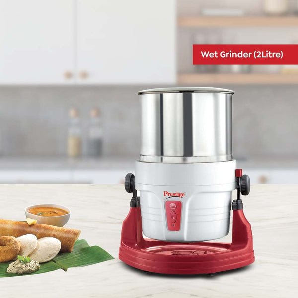 Prestige Stainless Steel Wet Grinder Pwg 01 (200 Watts) With Tilting Drum, Cocunut Scraper And Atta Kneader Attachment