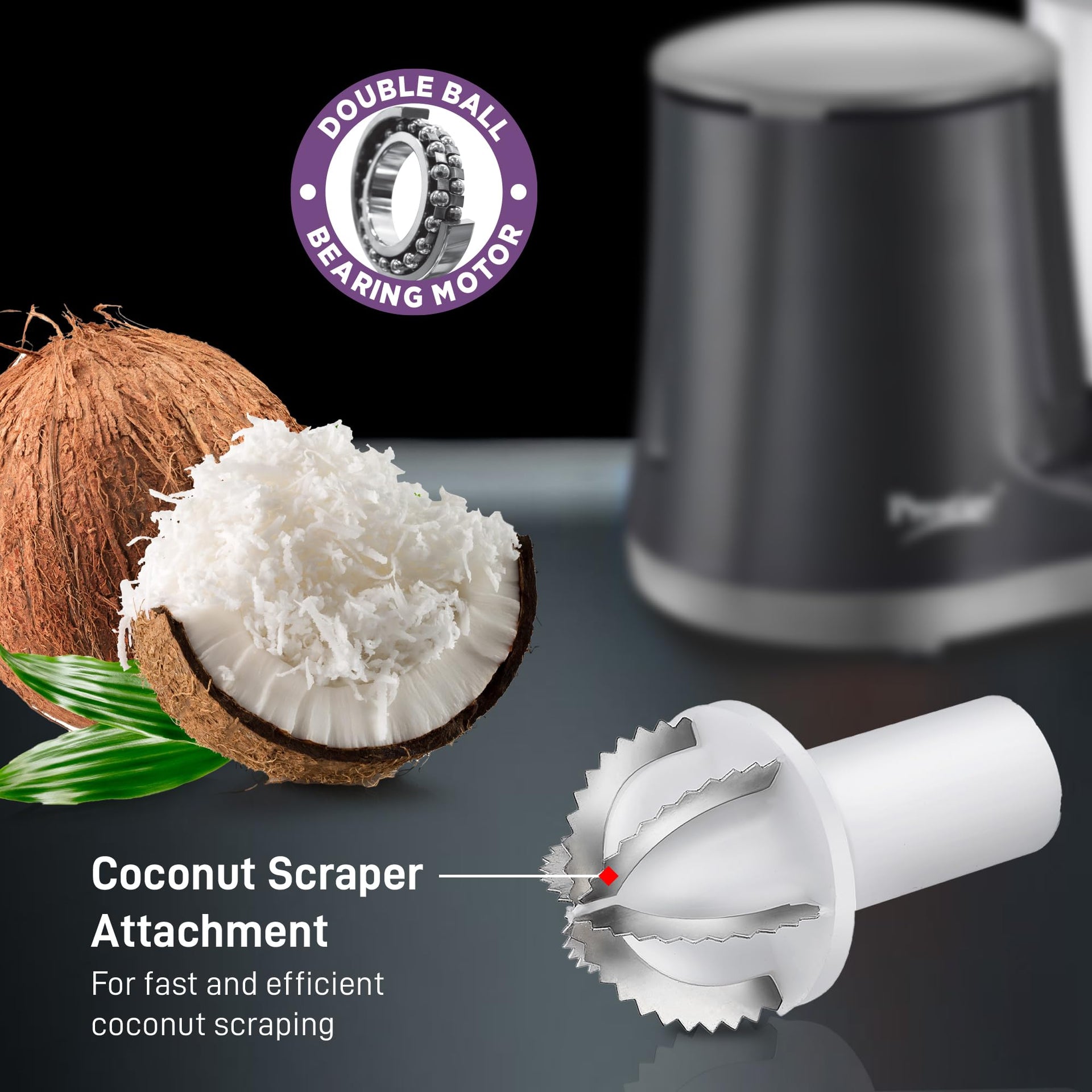 Prestige Ultima Pro 2 Litre Table Top Wet Grinder |200 Watts Heavy Duty Motor|Coconut Scraper Attachment|Atta Kneader Attachment|Stainless Steel Drum|2 Years Warranty|Silver & Black
