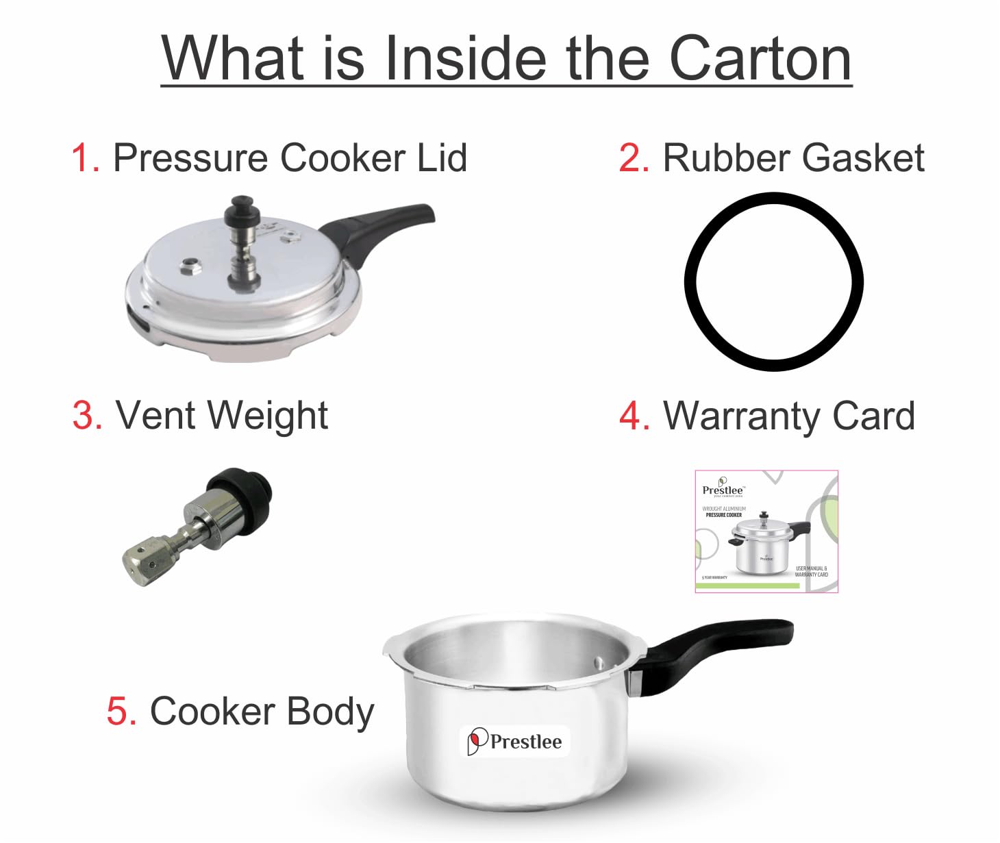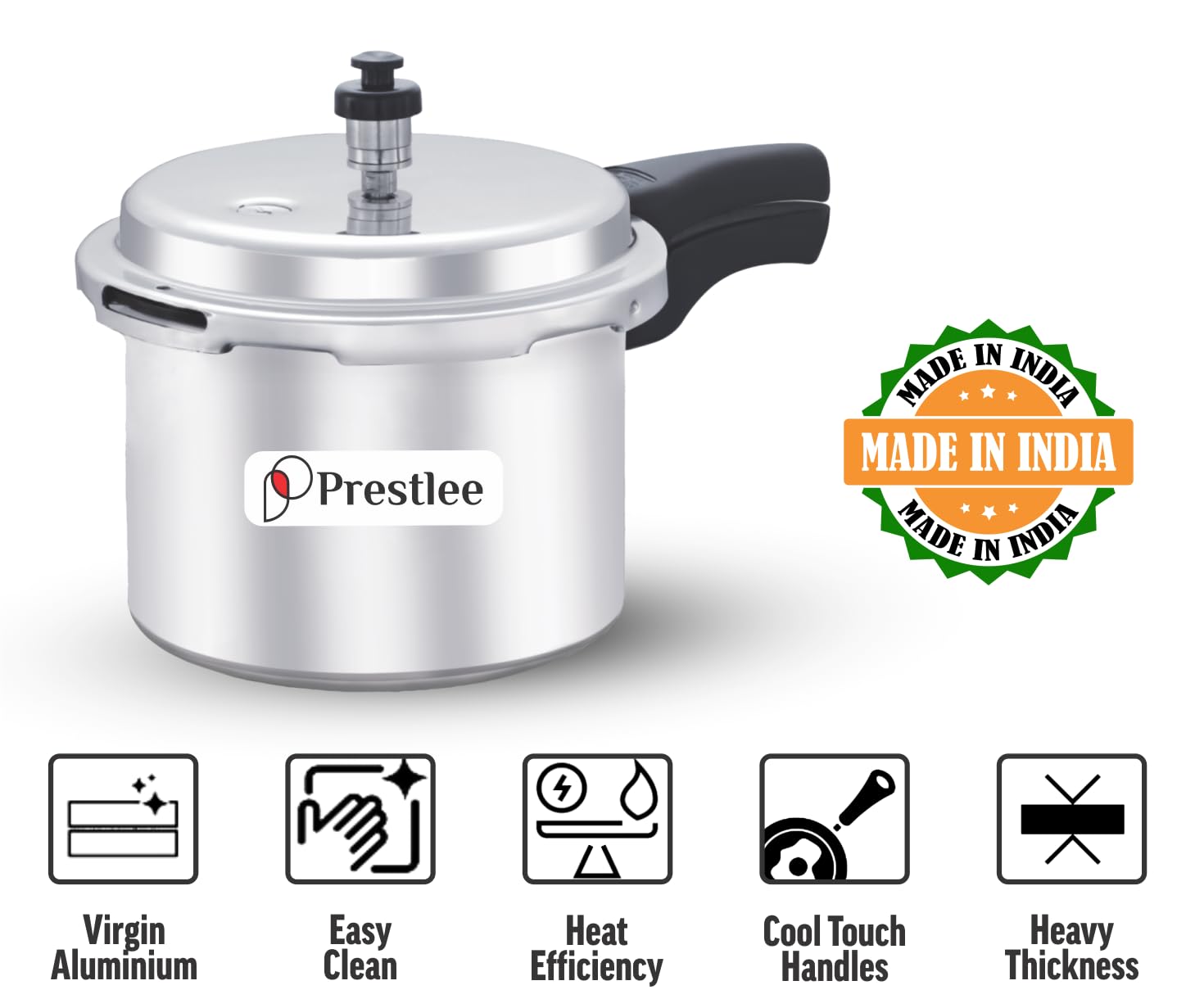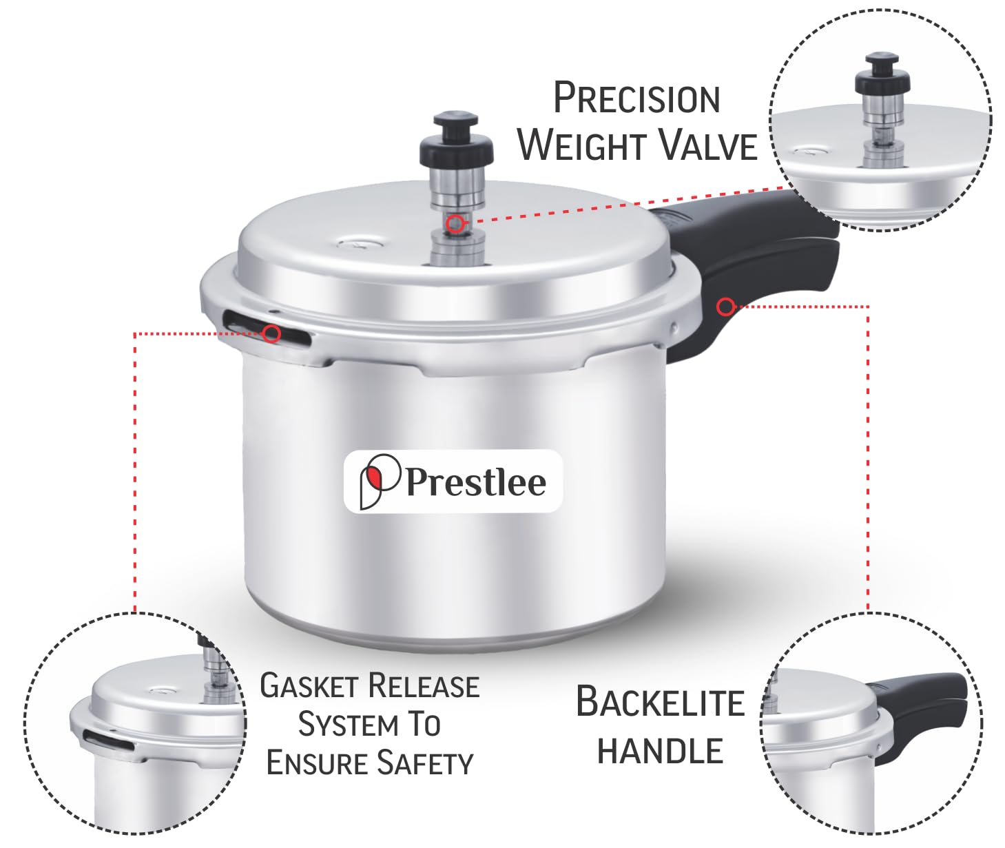 Prestlee Aluminium 3 Litres Pressure Cooker | Outer Lid | Faster & Healthy Cooking | Gas Stove Compatible | ISI Certified | 5 Years Manufacturer's Warranty | Silver