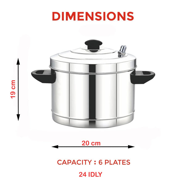 Prithi Home's and Kitchen Stainless Steel Deluxe Idli cooker Gas & Induction Compatible 6 Plate- 24 Idlies Idly cooker/Idly Maker (6 Plate - 24 Idlies)