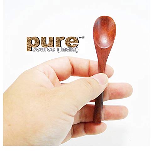 Pure Source India Wooden Masala Spoon for Small Containers, Handmade Wooden Spoon for Tea, Coffee, Sugar, Condiments & Spices, Set of 8 (4 Inch)