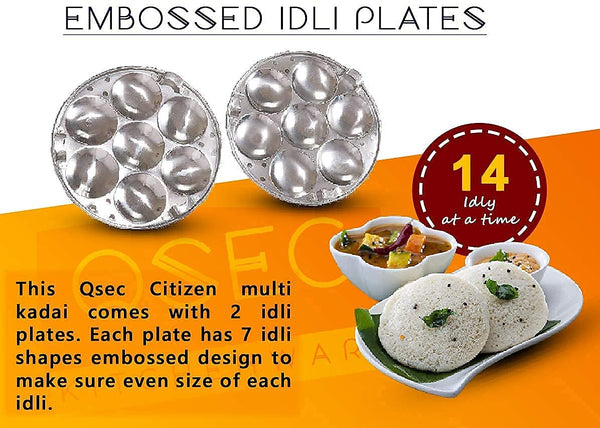 QSEC Stainless Steel Multi Kadai Idli cooker steamer with Copper Bottom All-in-One Big Size dhokla cooker | 5 Plate 2 Idli | 2 Dhokla | 1 Patra | Momo steamer | 3 in 1 | Idli maker steamer - 285MM 100% Non toxin material