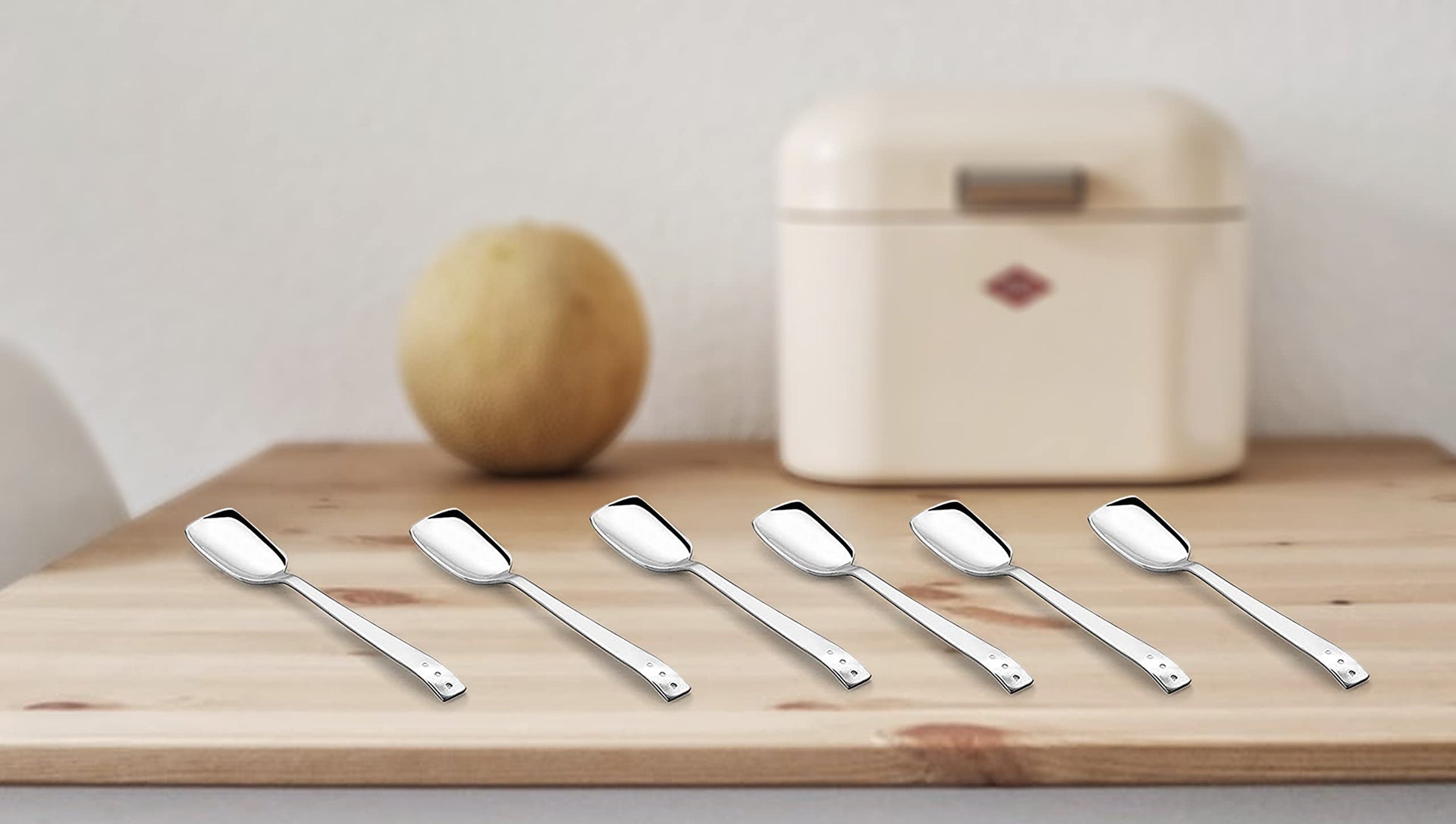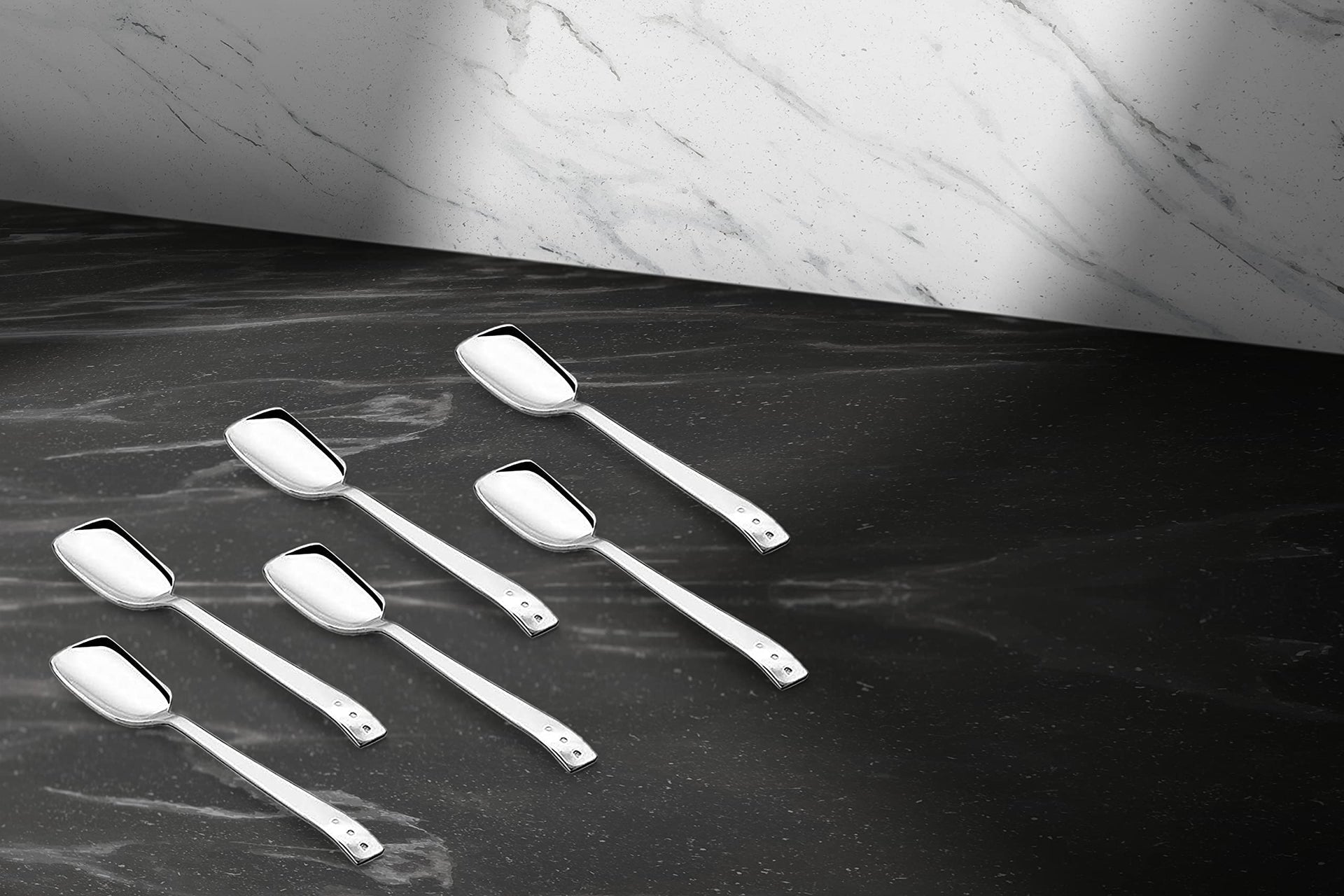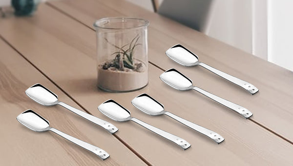 Shapes KOKO White Dot Set of 12 Pcs Ice Cream Spoon, Rust Proof High Durable Stylish Dishwasher Safe, Silver Length-14 cm