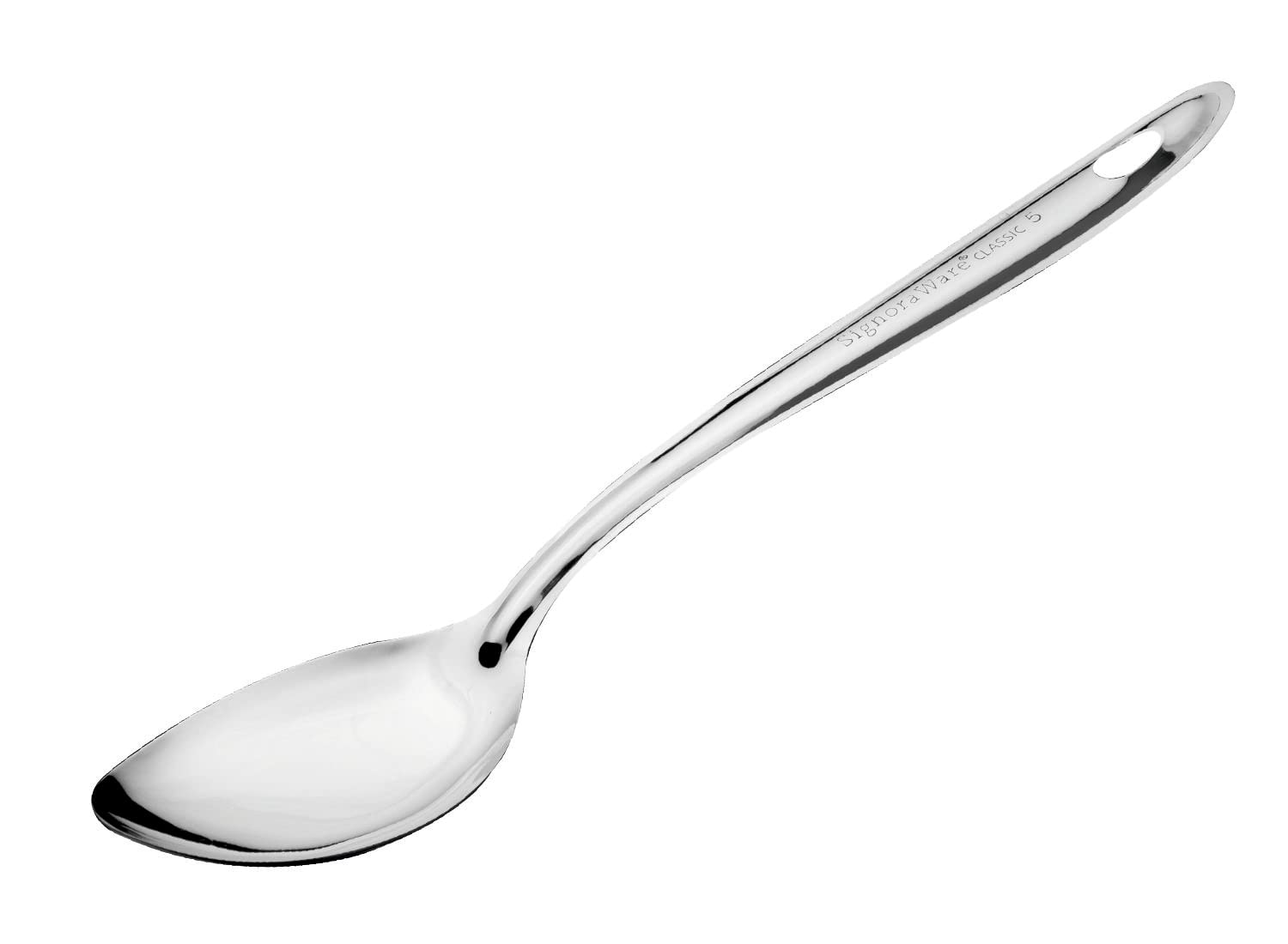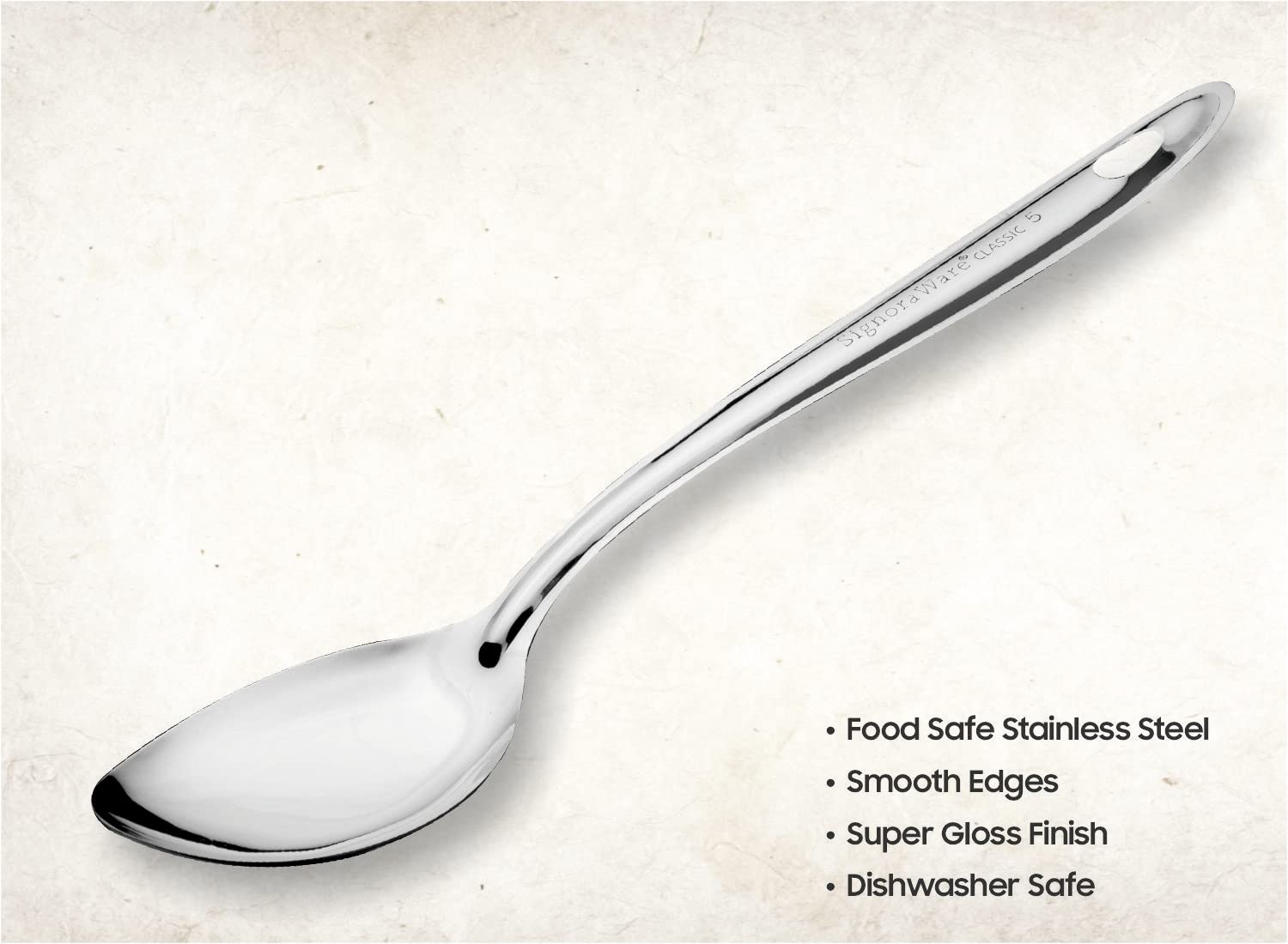 SignoraWare Kitchen Tools Stainless Steel (Food Grade) Heavy Gauge (1.1 MM) Classic Solid Pan Spoon No.4 (Serving Spoon) Chamcha for Serving Rice/Pasta/Subzi (Size 26.7 cm)