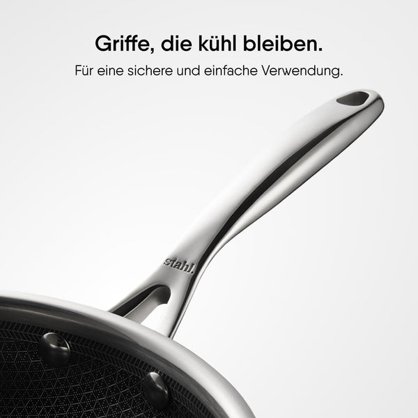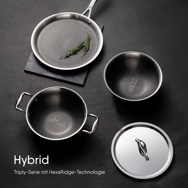 Stahl Artisan Hybrid Triply Frying Pan with Lid, Fry pan Induction Base, Frying pan Non Stick, Omelette Pan Non Stick, Frying pan Stainless Steel, 1.1 L, 20 cm