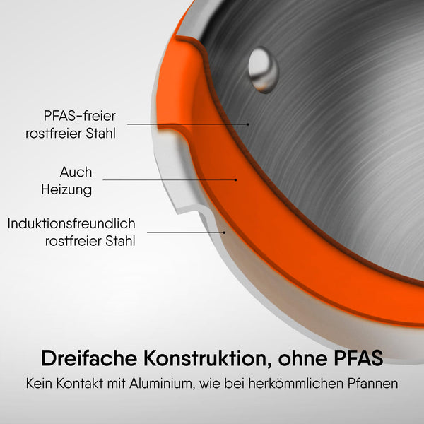 Stahl Artisan Triply Stainless Steel Fry Pan with Lid, Induction & Gas Stove Compatible Frying Pan, Omelette Pan, Egg Pan, 1.1 L, 20 cm