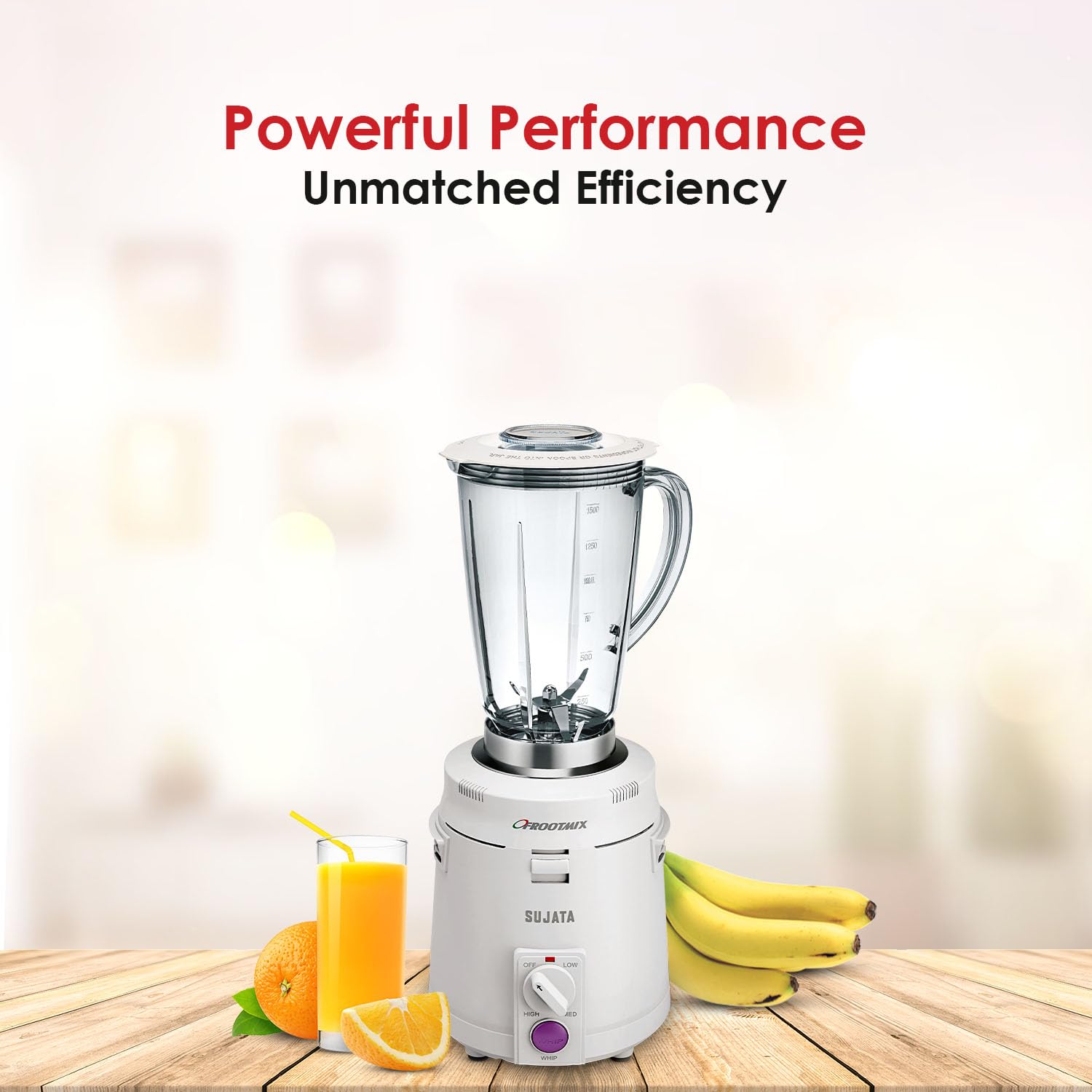 Sujata Polycarbonate Frootmix 900 Watts Smart Mixer Blender | 22000 Rotations Per Min | 90 Minutes Continuous Running | Versatile Jar 1750 Ml, White