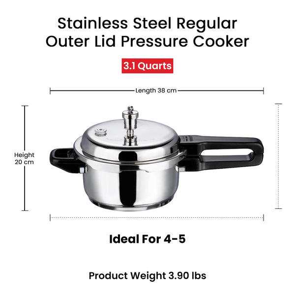 Vinod 18/8 Stainless Steel Pressure Cooker Outer Lid 3 Litre | Unique Sandwich Bottom Cooker | Induction and Gas Base | ISI and CE certified | 2 Years Warranty
